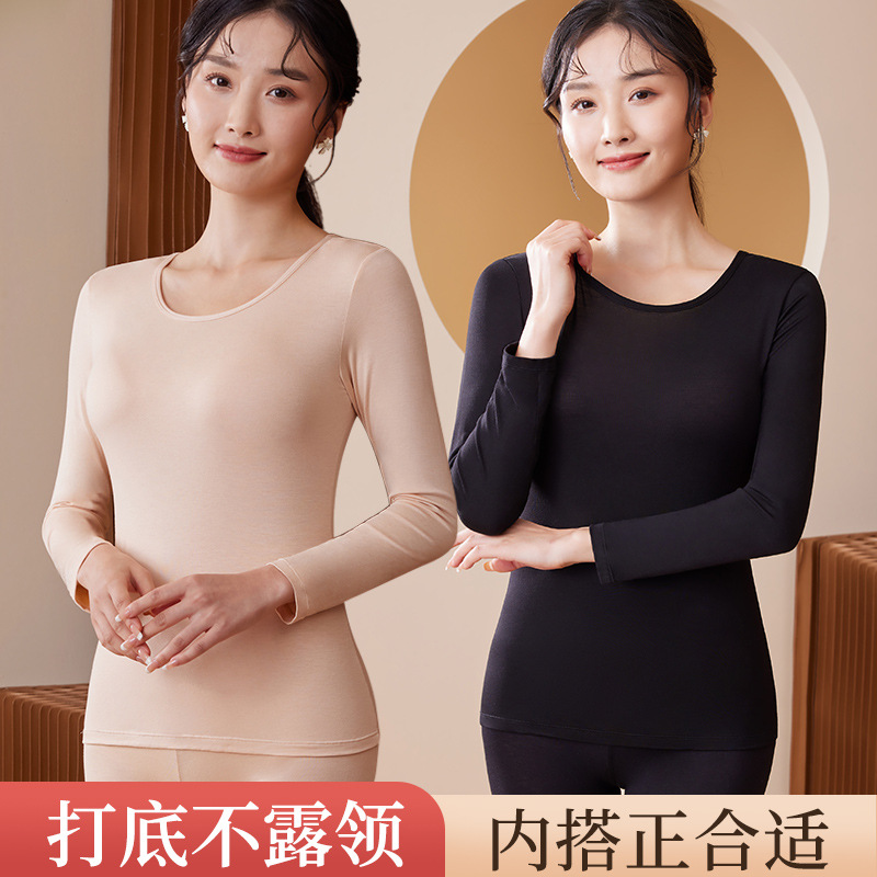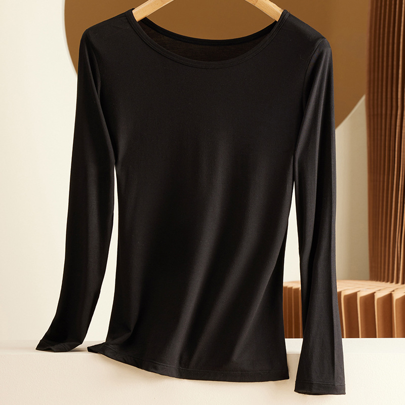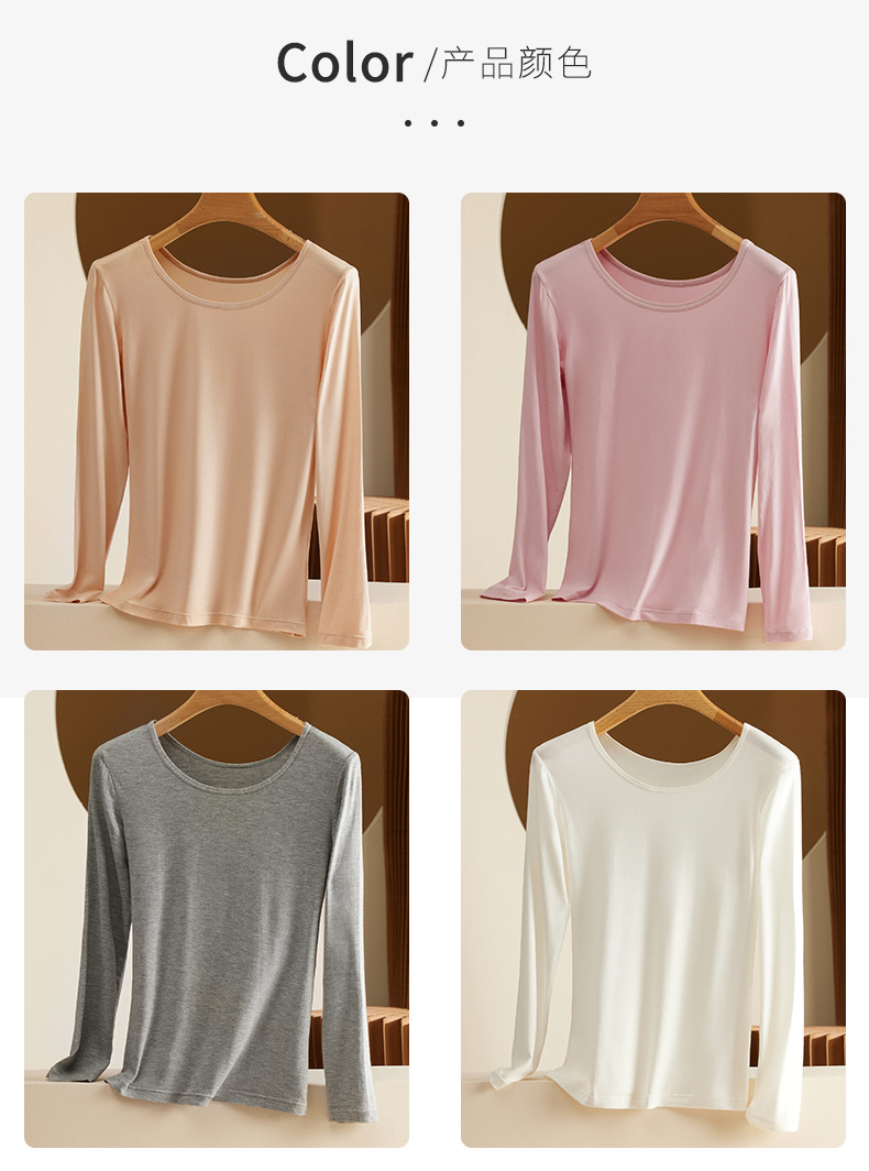 Весенне-осенняя нижняя рубашка из модала, женский тонкий пуловер с круглым вырезом, облегающее нижнее белье, осенняя одежда, однотонный универсальный топ с длинными рукавами