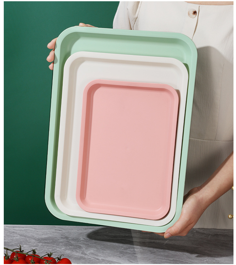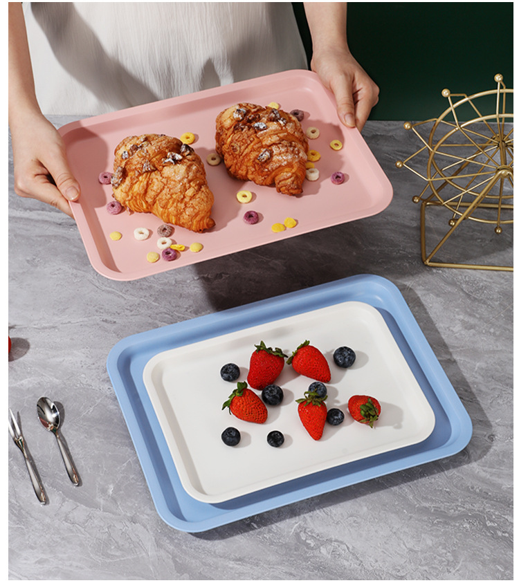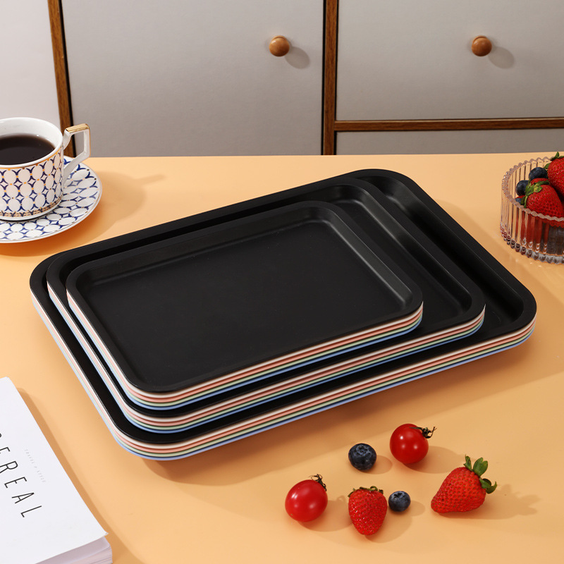 Бытовой пластиковый прямоугольный кухонный поднос для сервировки обеденного стола, подходит для гостиной, барбекю на открытом воздухе, для чая, фруктов, с дизайном под дерево.
