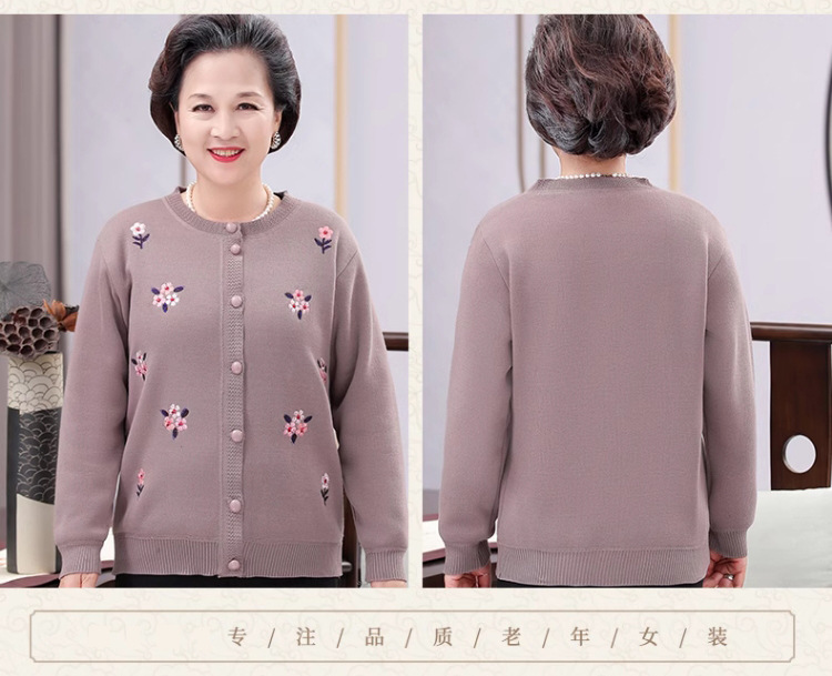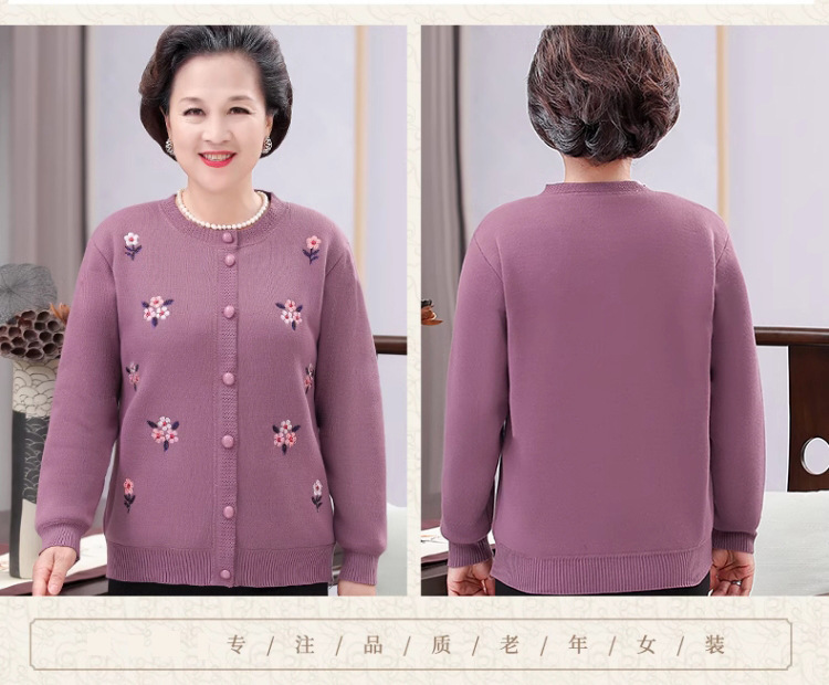 Осеннее трикотажное пальто для среднего и пожилого возраста, свитер для бабушки, кардиган, утолщенная мама на флисовой подкладке, зимняя одежда для пожилых людей