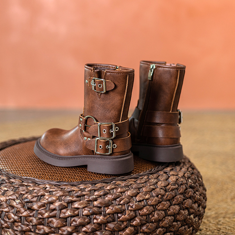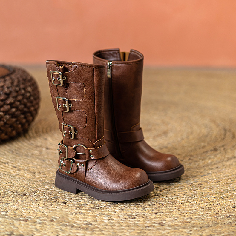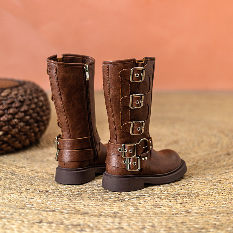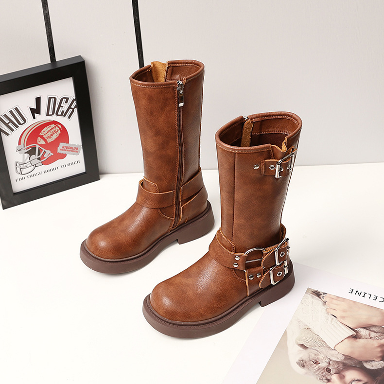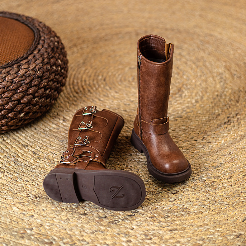 Детские сапоги Martin корейские сапоги Коричневые сапоги рыцаря сапоги ковбойские сапоги для девочек толстая подошва мягкая кожа ретро туфли