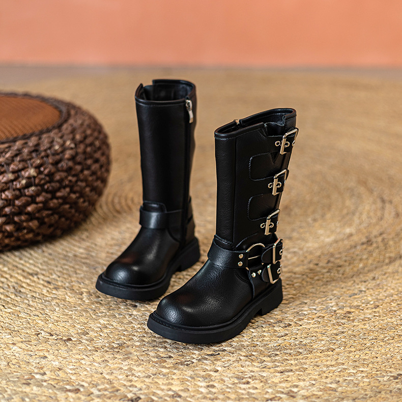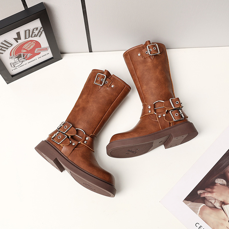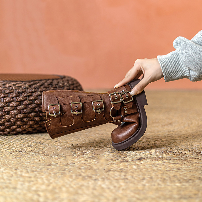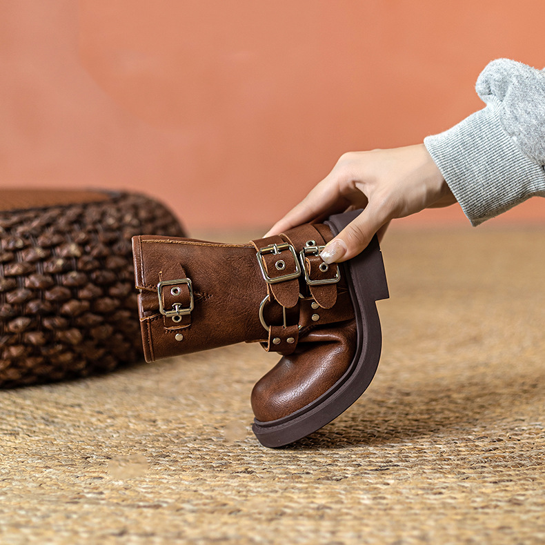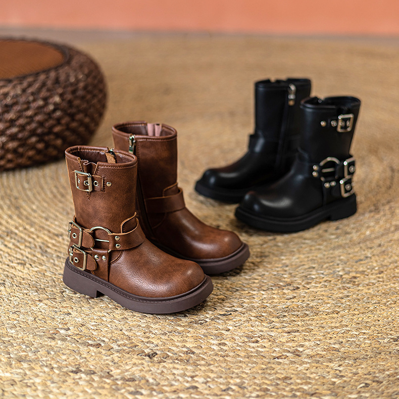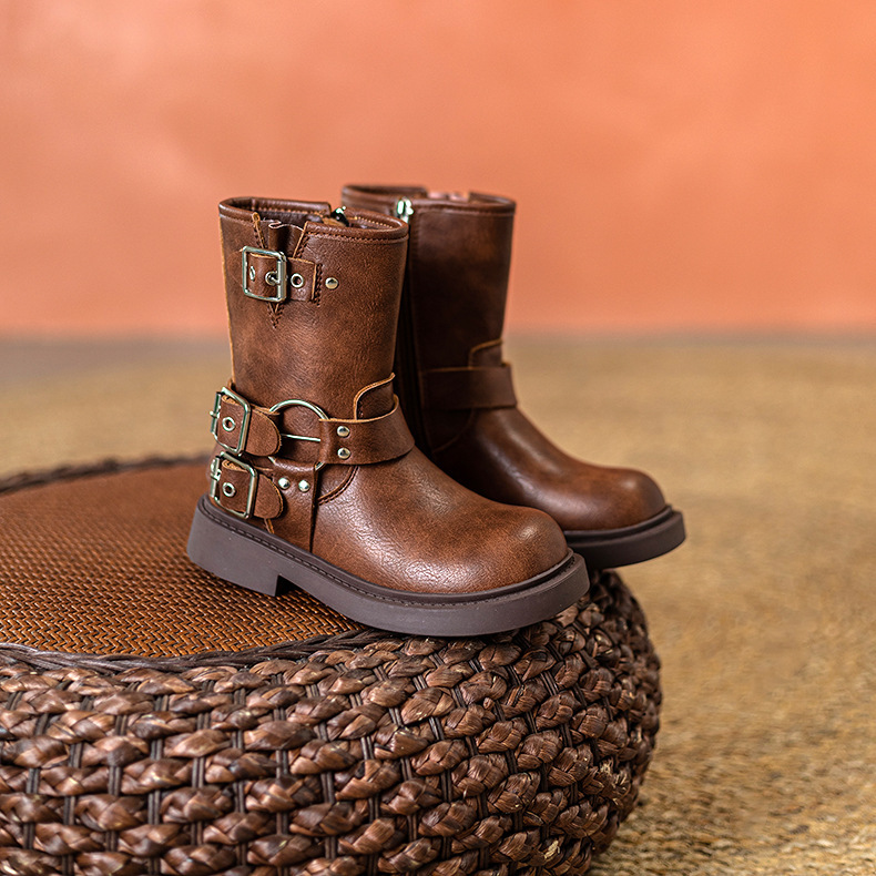 Детские сапоги Martin корейские сапоги Коричневые сапоги рыцаря сапоги ковбойские сапоги для девочек толстая подошва мягкая кожа ретро туфли