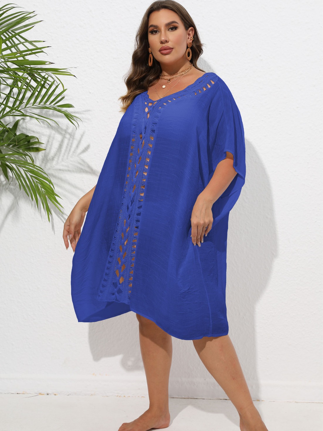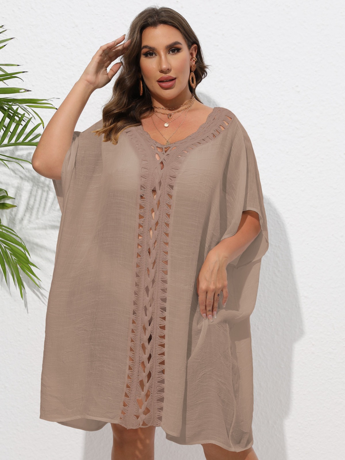 Женское платье, трансграничное Европейское и американское, женские свободные пляжные бикини больших размеров, вязаные крючком вручную, внешняя блузка