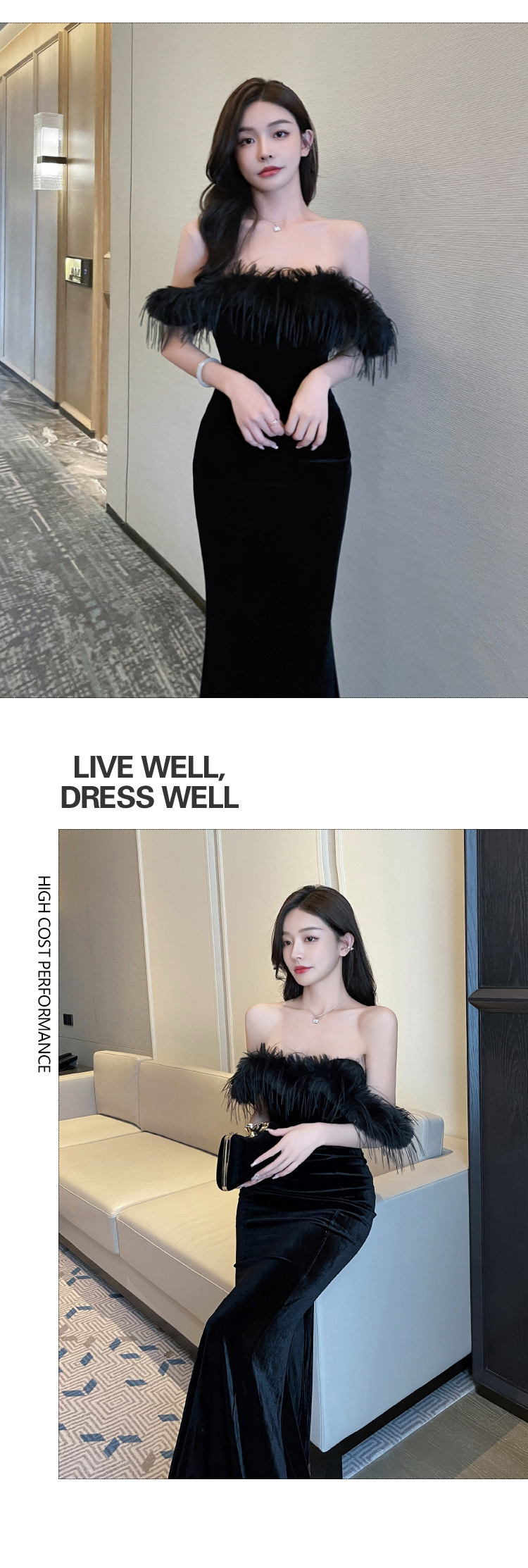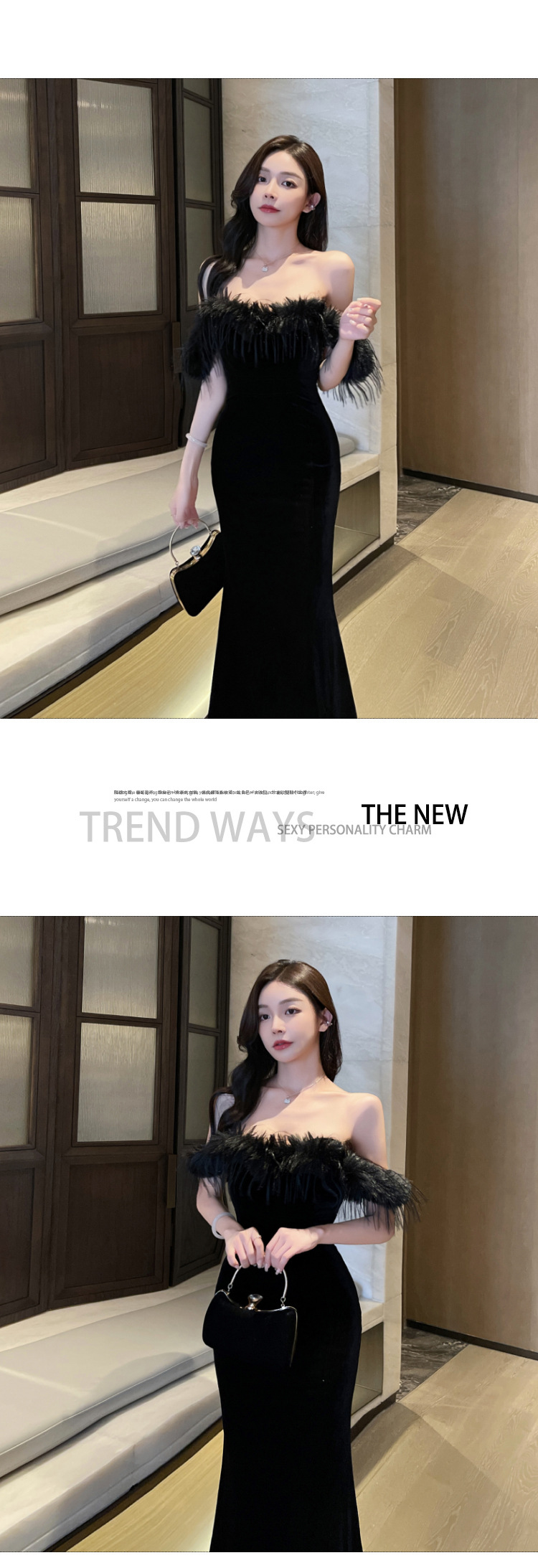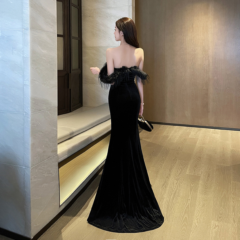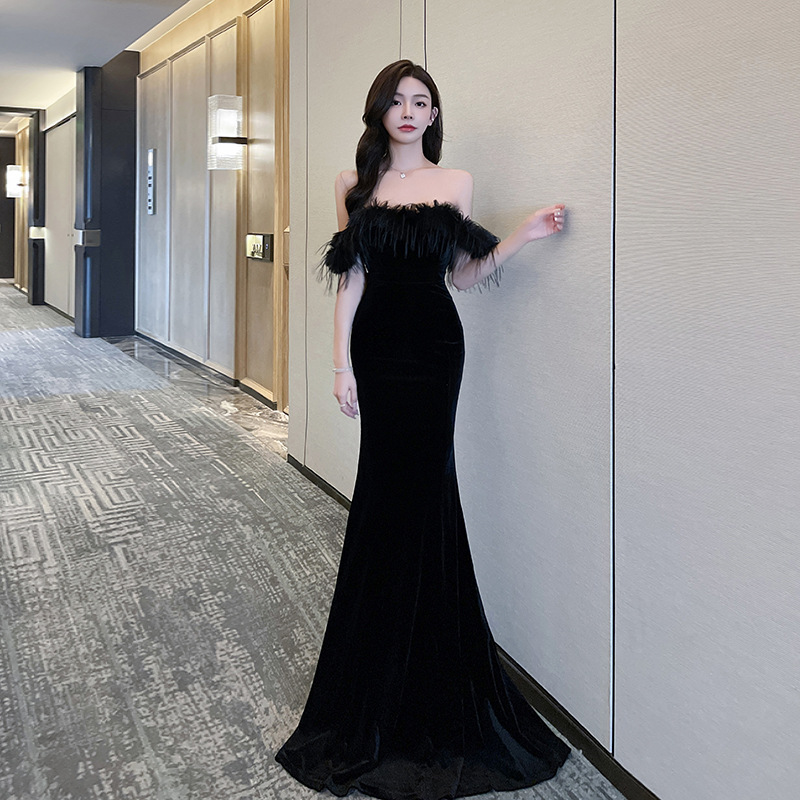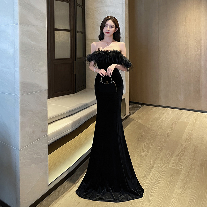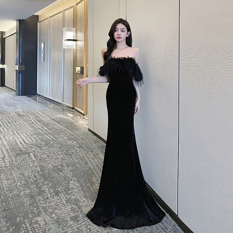 Женское длинное платье с воротником Mao без бретелек, женское длинное платье, темпераментное Ночное платье с открытой спиной, модель автомобиля, вечернее платье для ежегодного собрания