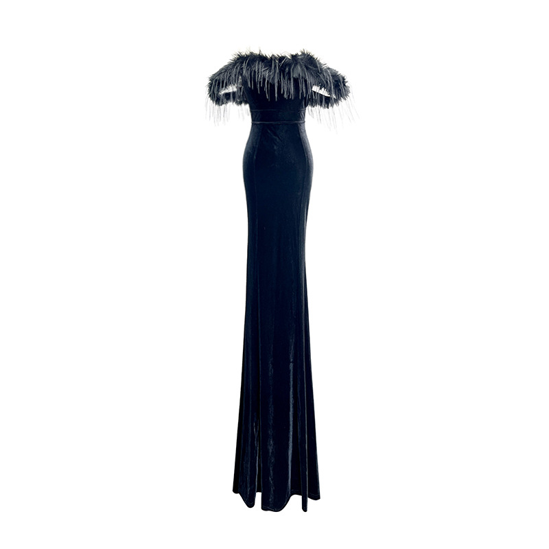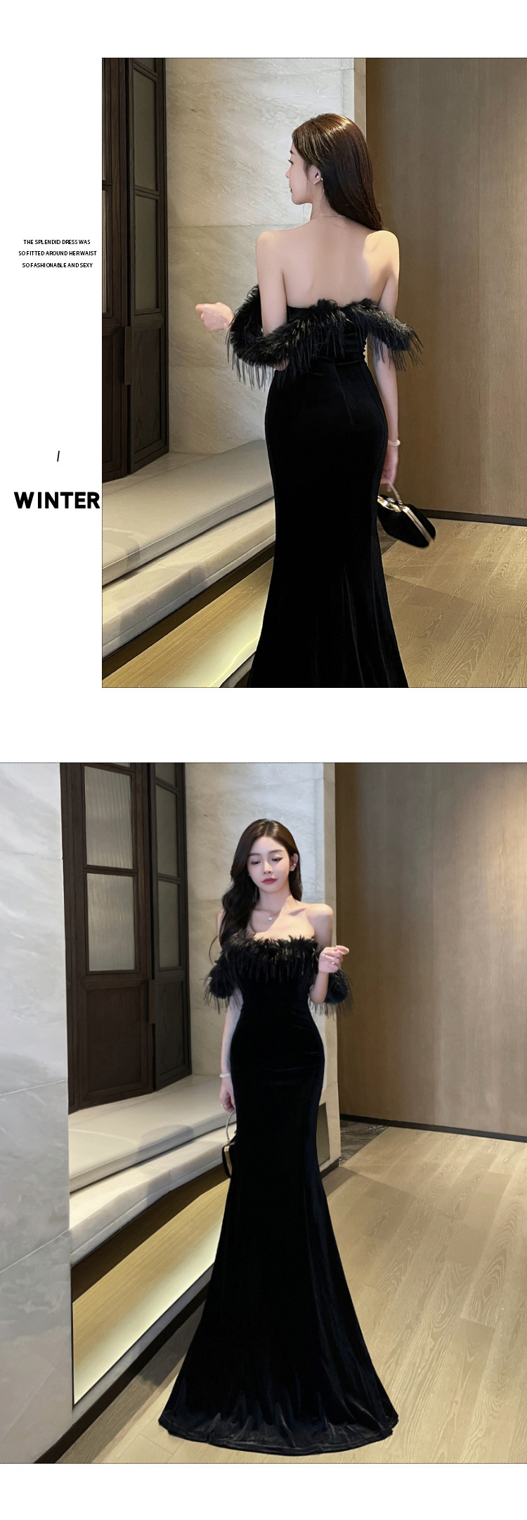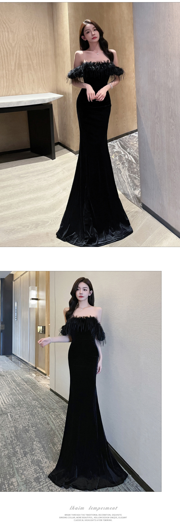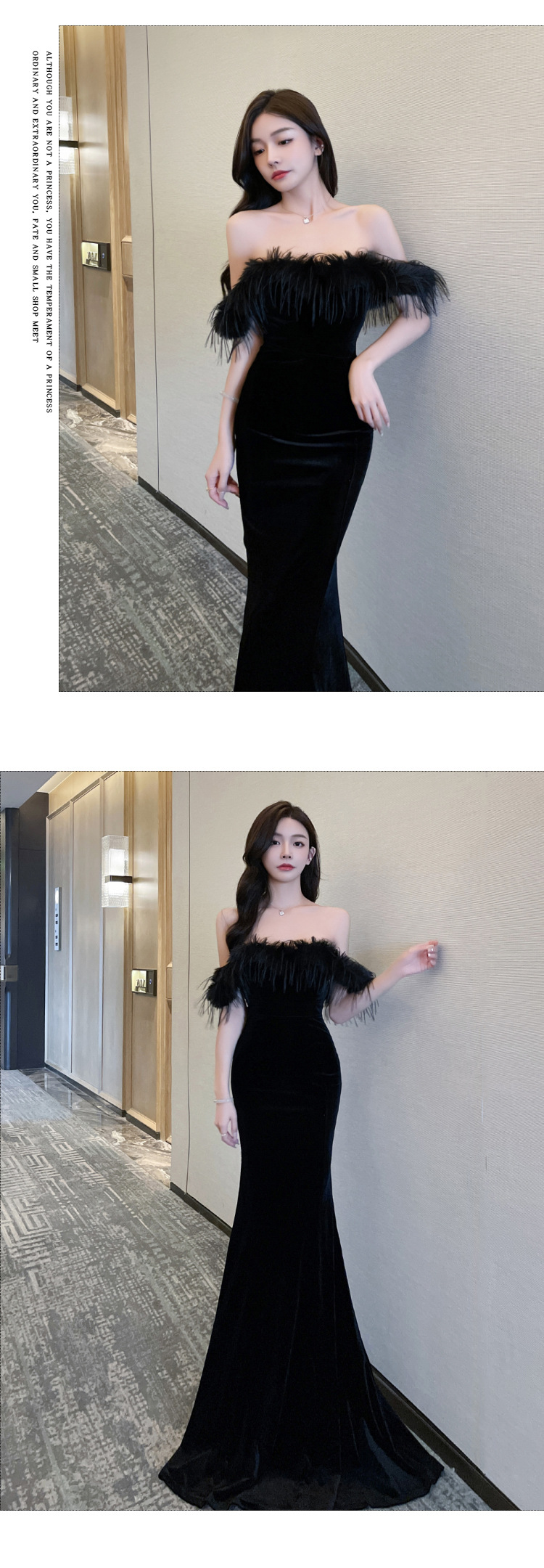 Женское длинное платье с воротником Mao без бретелек, женское длинное платье, темпераментное Ночное платье с открытой спиной, модель автомобиля, вечернее платье для ежегодного собрания