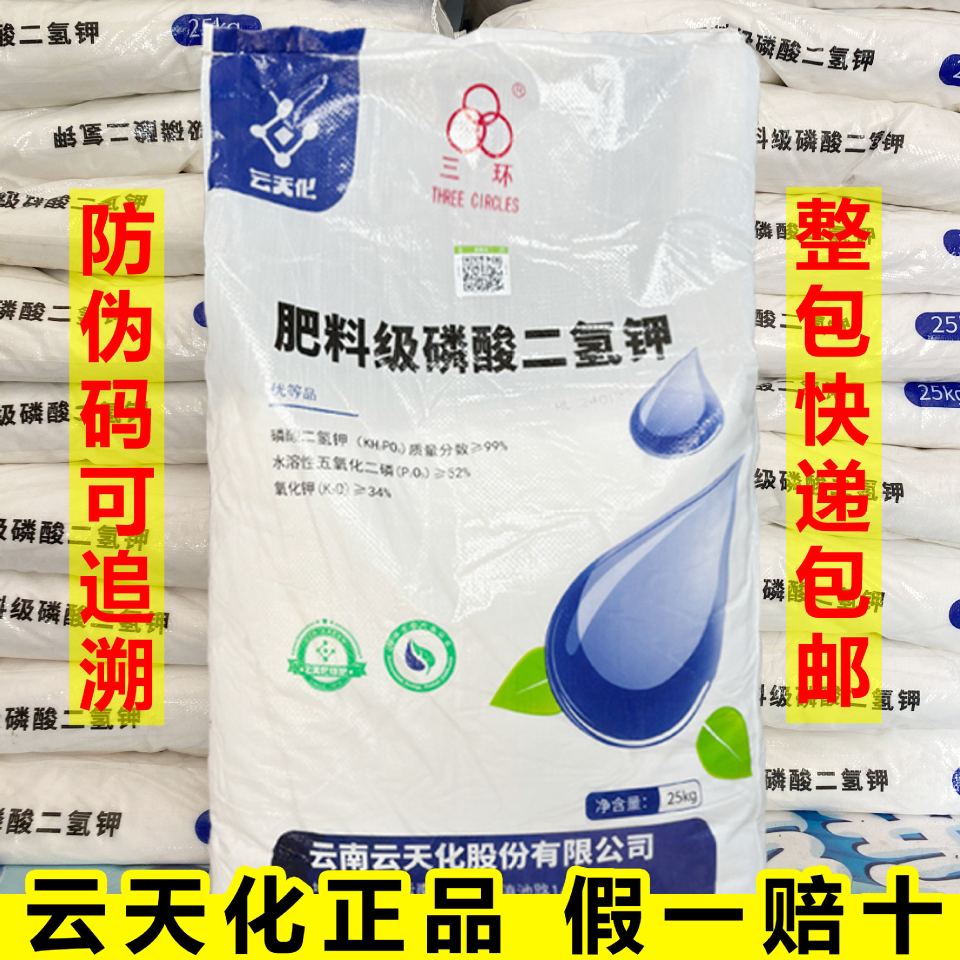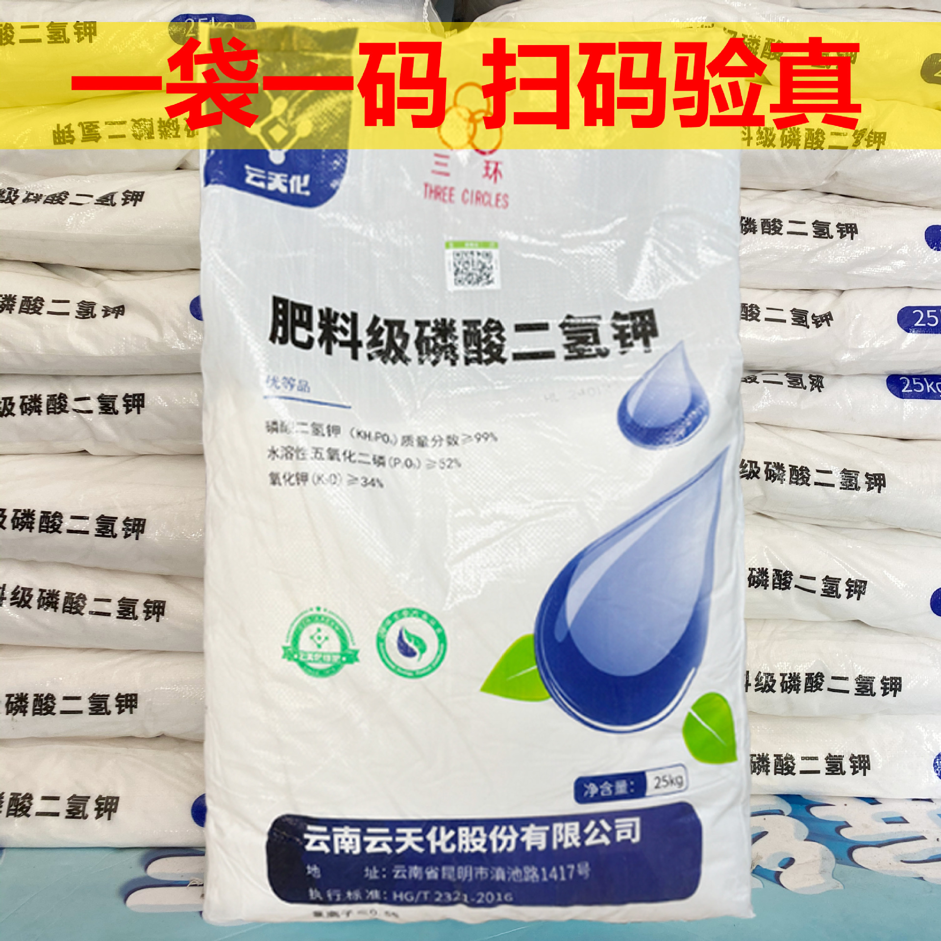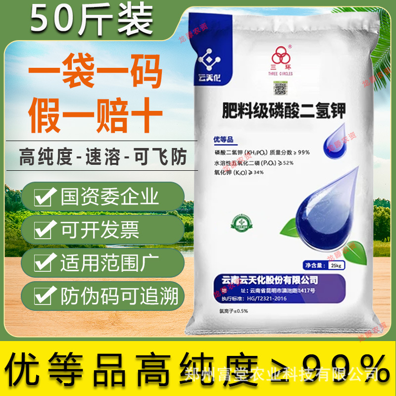 Yuntianhua Фосфат калия дигидрогеновый Сельскохозяйственное оригинальное листовое удобрение для аквакультуры Фосфорно-калийное удобрение Водорастворимое удобрение 25 кг Мгновенное