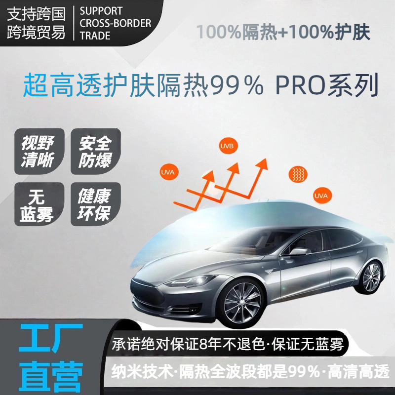 Сверхпрозрачная, гипоаллергенная, теплоизоляционная автомобильная пленка серии PRO с 99% защитой от солнца, взрывобезопасная, без синего отблеска, оптом