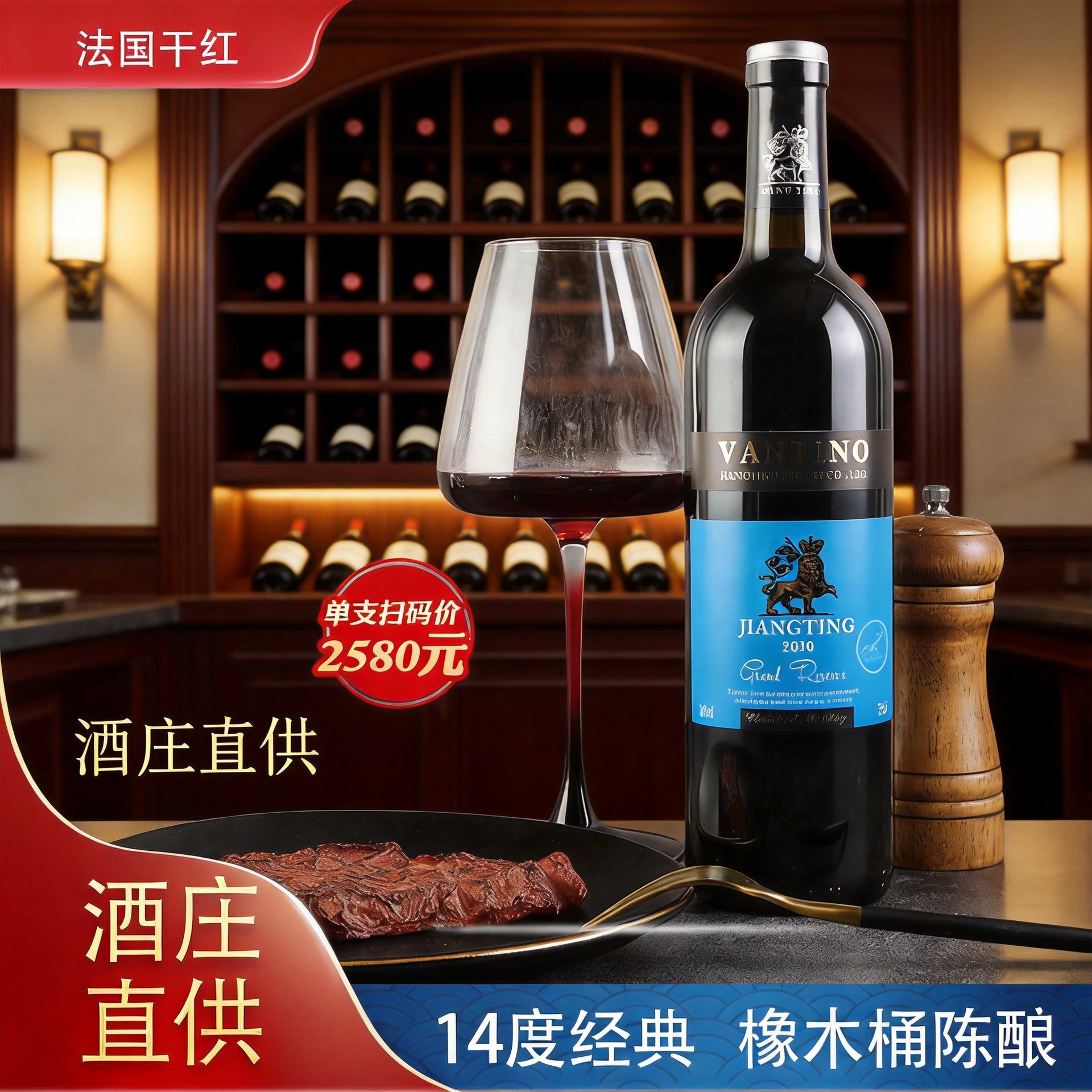 Вино красное сухое Jiangting Wantino оптом, Каберне-Совиньон, 750 мл, 14%, подарочная упаковка, оригинальная бутылка