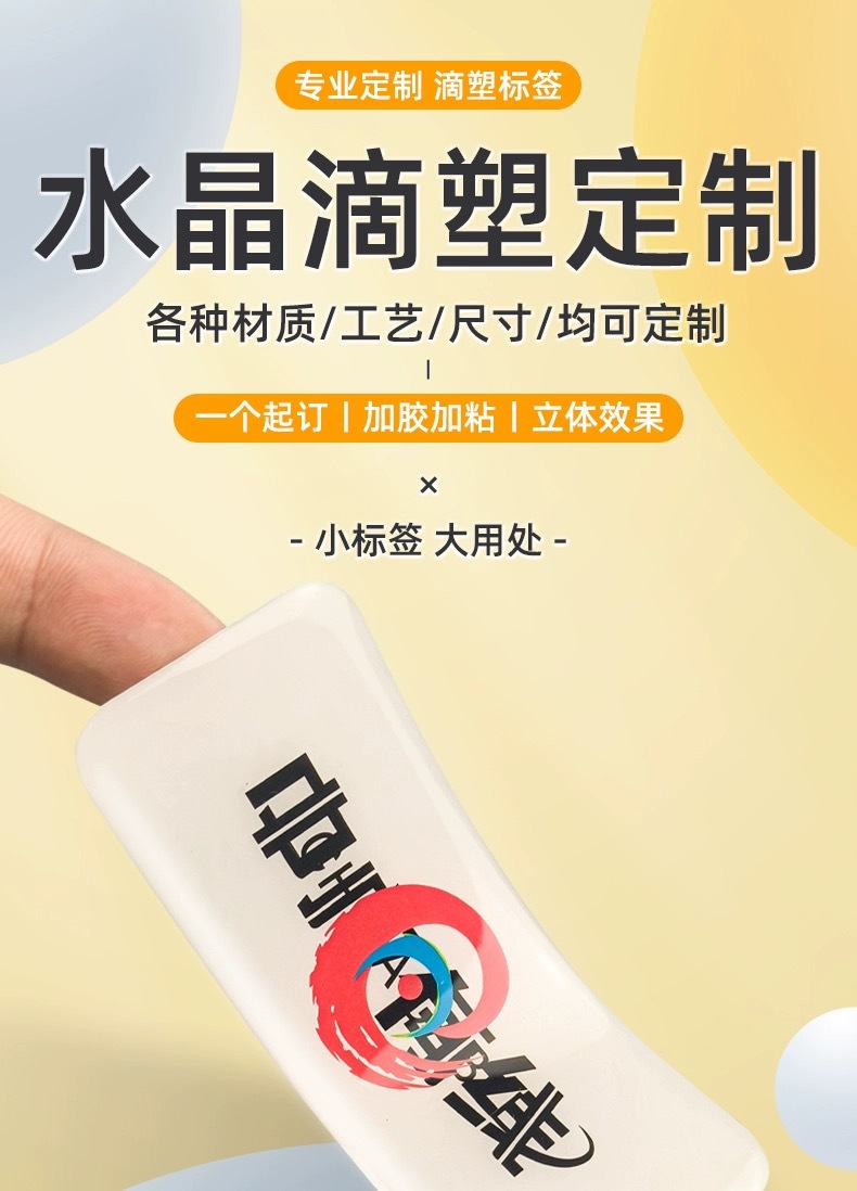 Круглая клейкая наклейка, пластиковая самоклеящаяся этикетка с логотипом, вывеска с рисунком, высокая прозрачная смола, мягкий клей, стерео водонепроницаемый