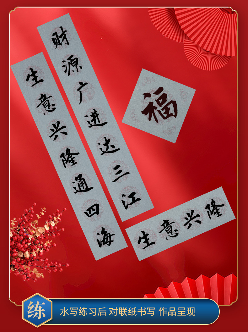 Весенний фестиваль куплетов для написания воды, ручка для написания воды, упражнение по написанию воды, пять слов и семь слов