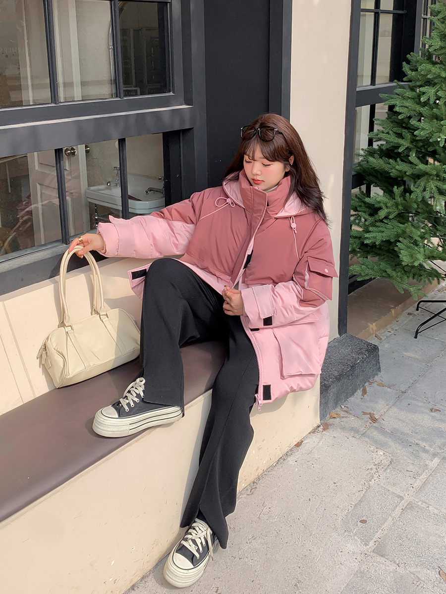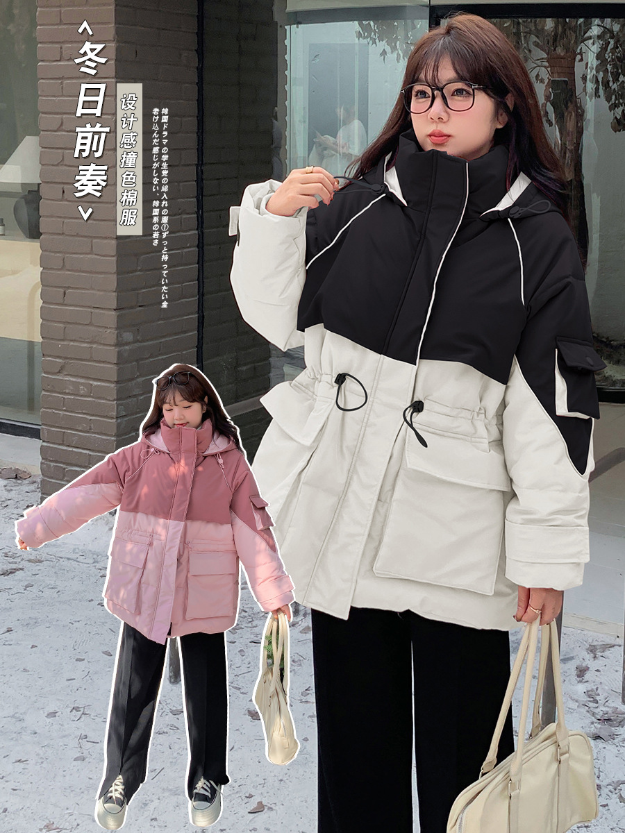Женская одежда больших размеров MJ003, новая коллекция осень-зима 2025, утепленная ветрозащитная теплая хлопковая куртка с цветными блоками для полных женщин, хлопковое пальто для полных женщин.
