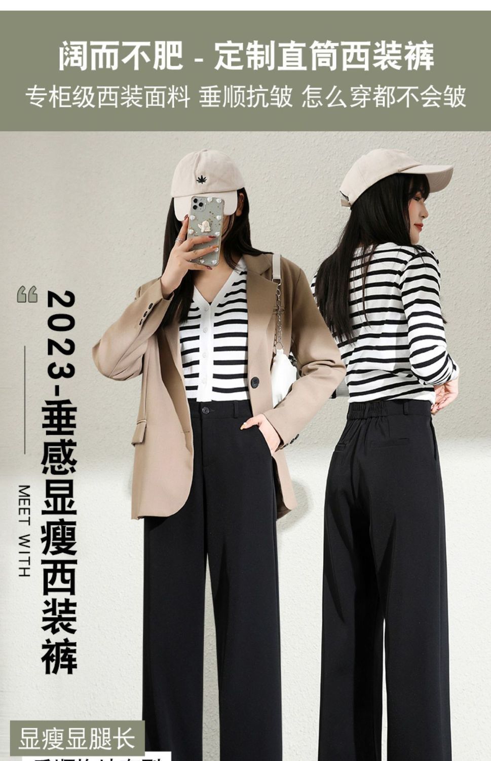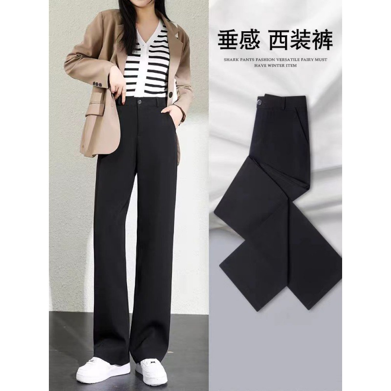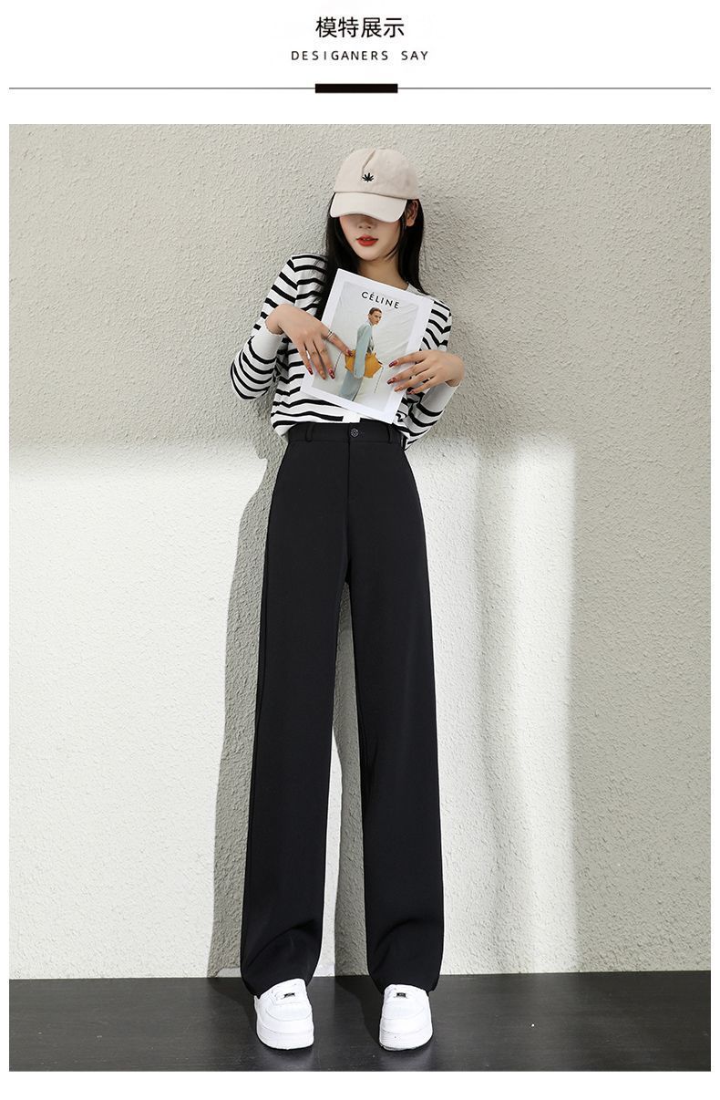 Костюм с широкими брюками для женщин, весна и осень, узкие драпированные узкие прямые брюки с высокой талией, новинка 2024, черные повседневные брюки