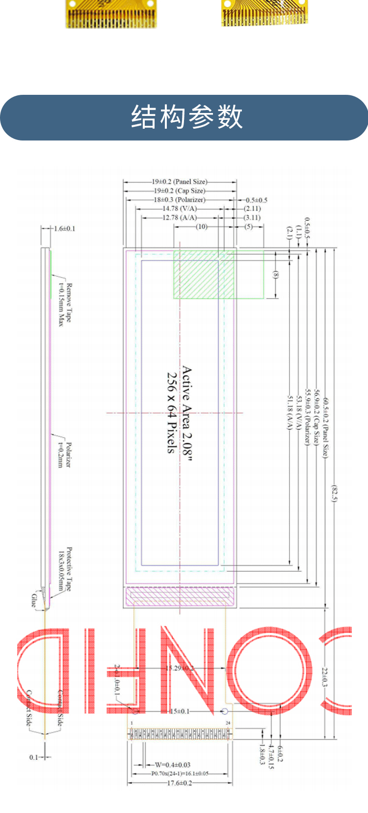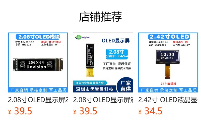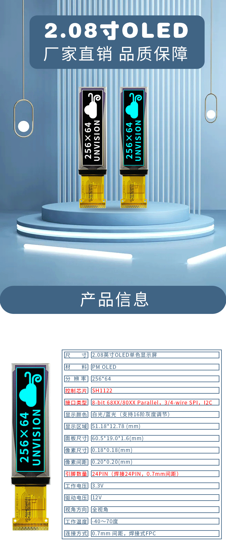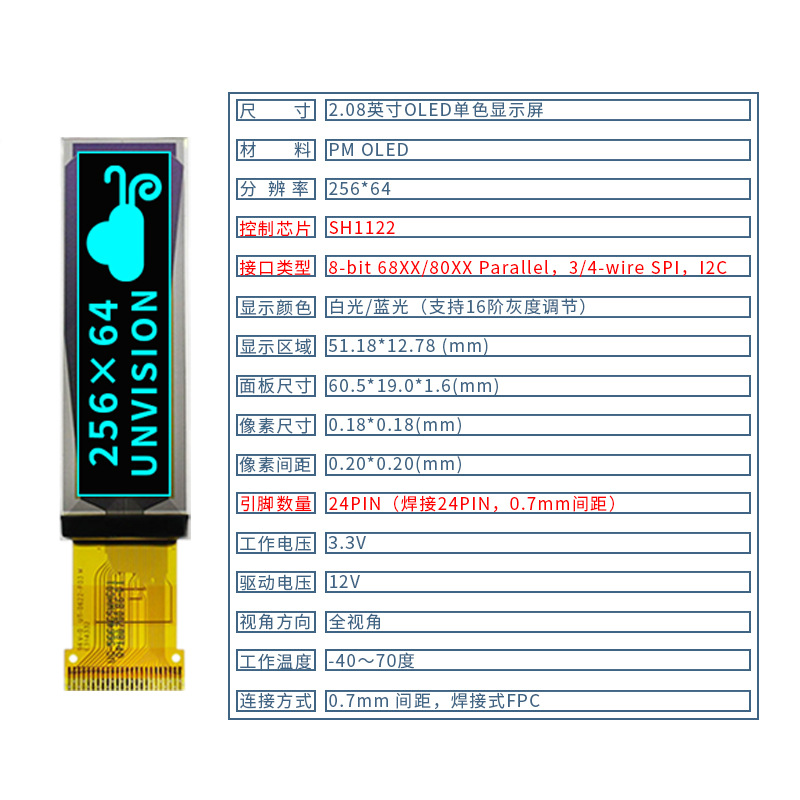 2,08-дюймовый OLED-дисплей 256 × 64 с 16-уровневой регулировкой серого с интерфейсом SPI IIC драйвером SH112