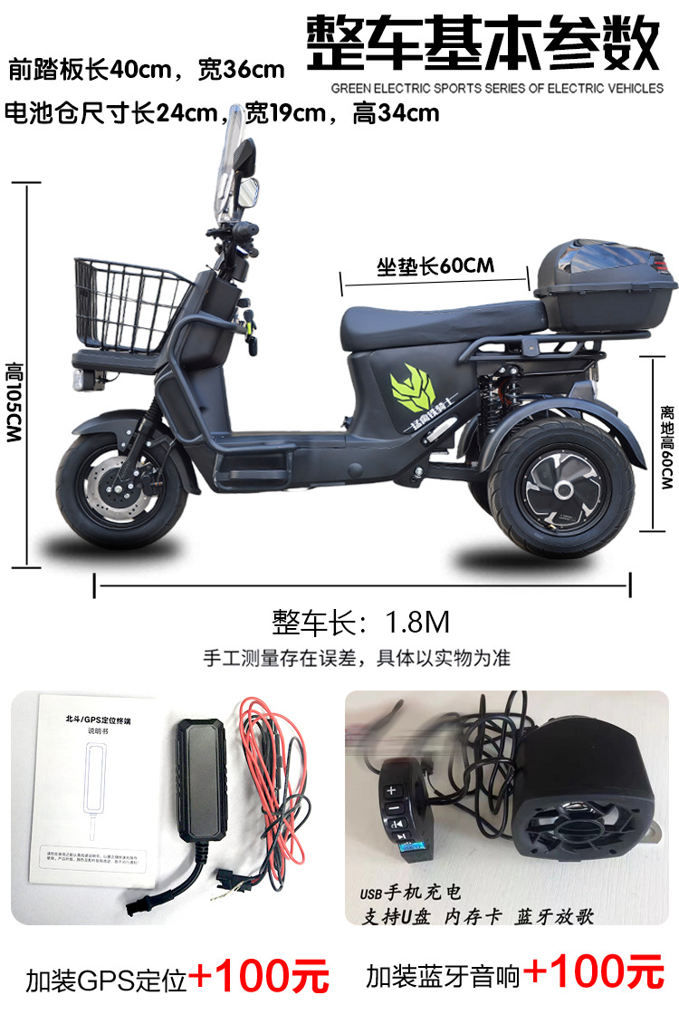 Мощный электрический моноколесо, трехколесный велосипед для доставки, перевозки грузов, дальних поездок, скутер на литиевой батарее