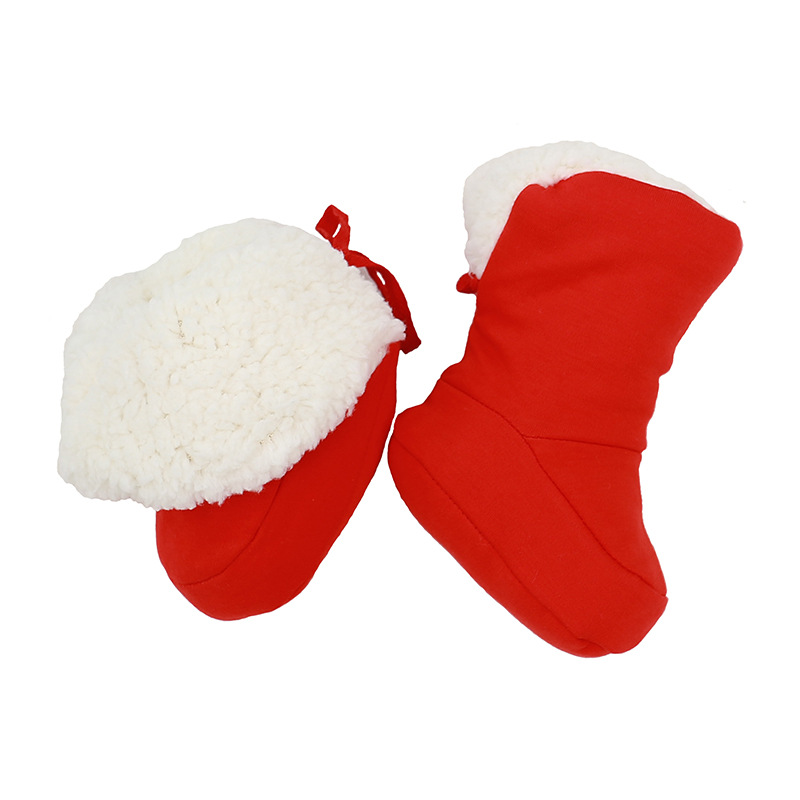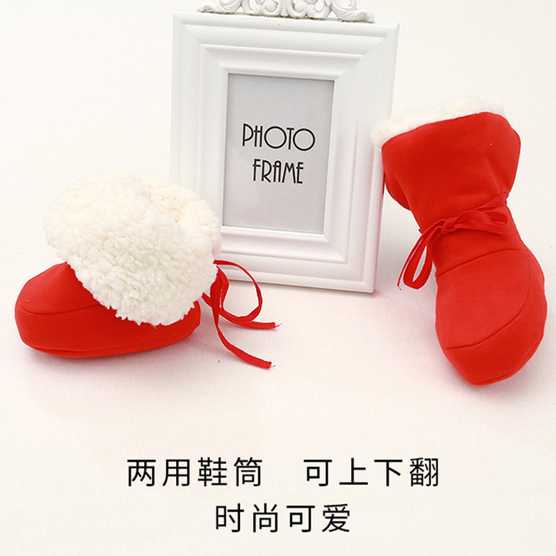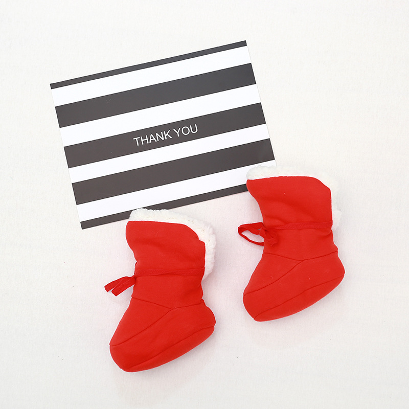 Осенне-зимняя утолщенная теплая зимняя обувь на флисовой подкладке для маленьких мальчиков и девочек, новогодняя красная мягкая подошва, хлопковая обувь для новорожденных