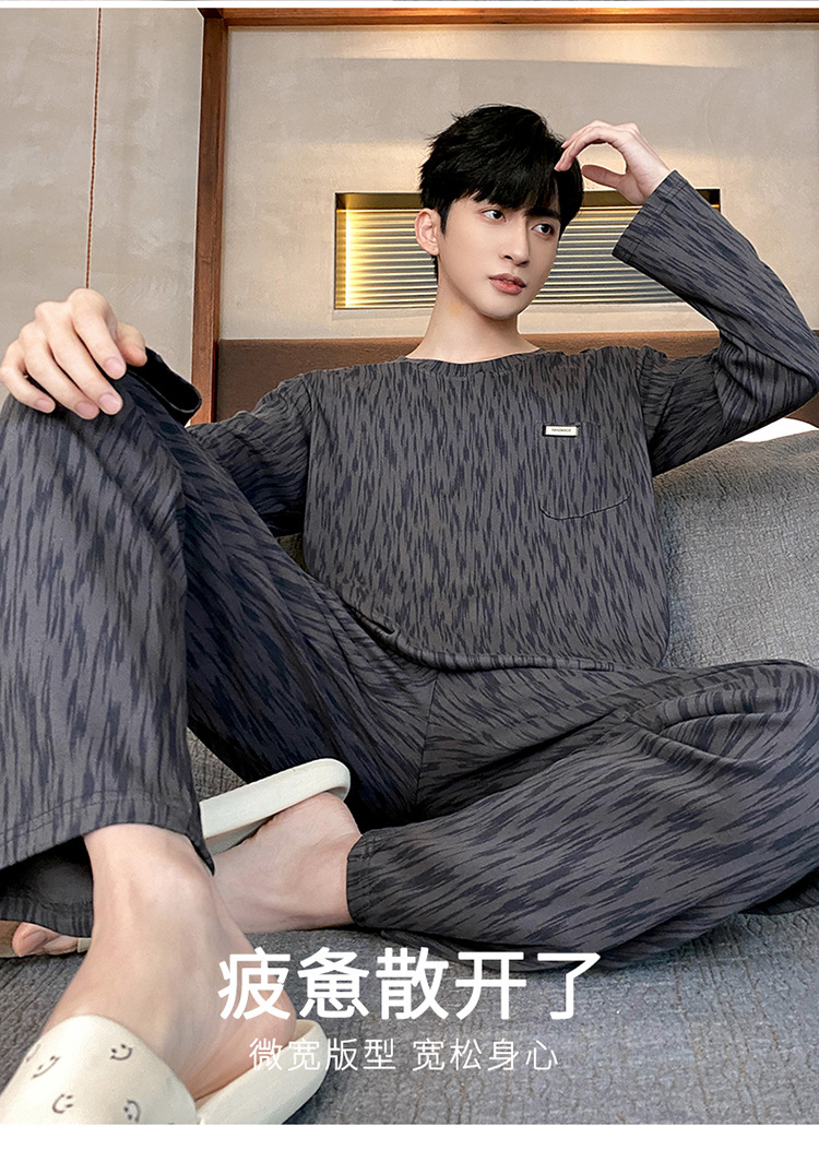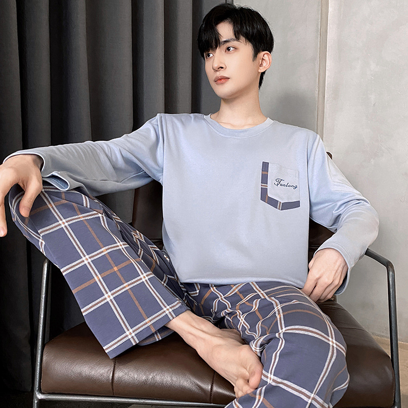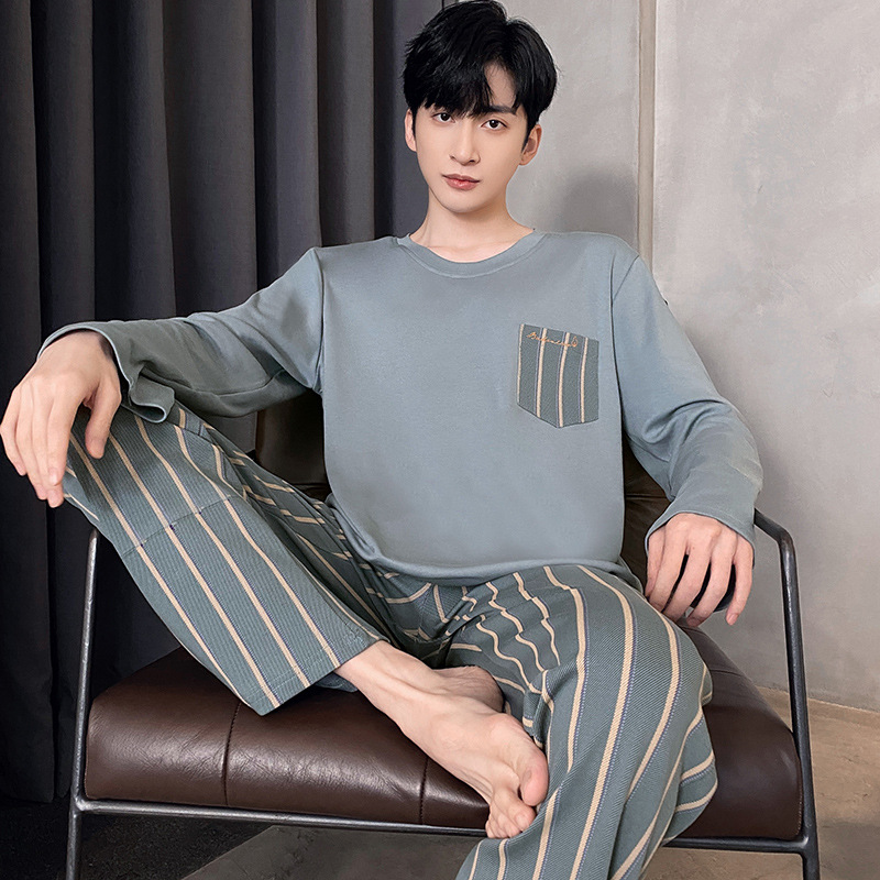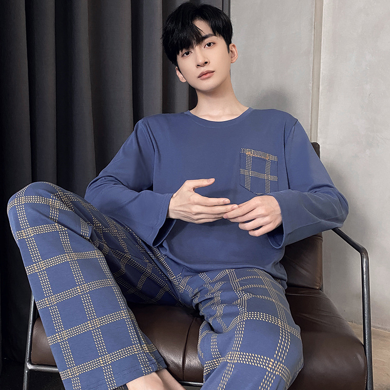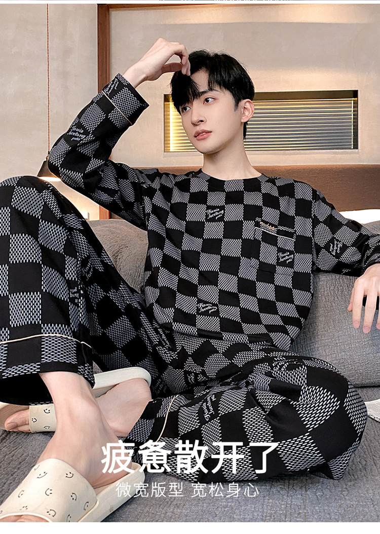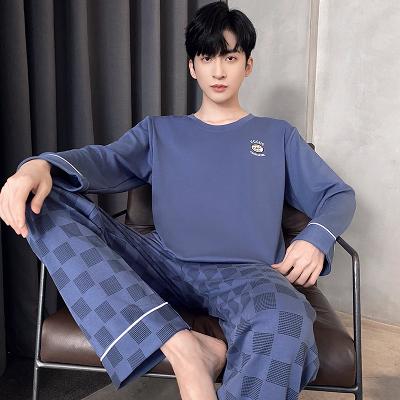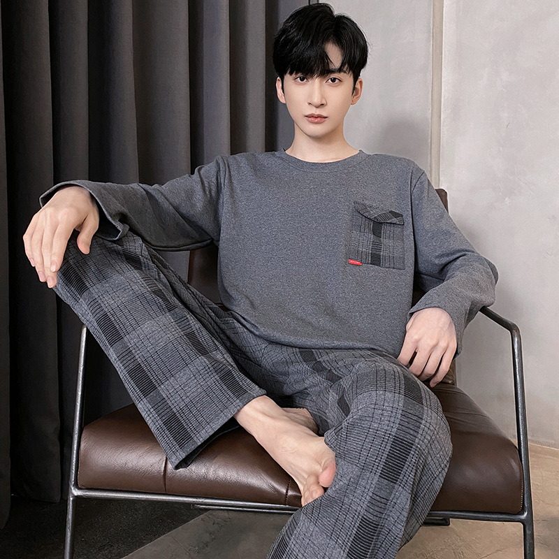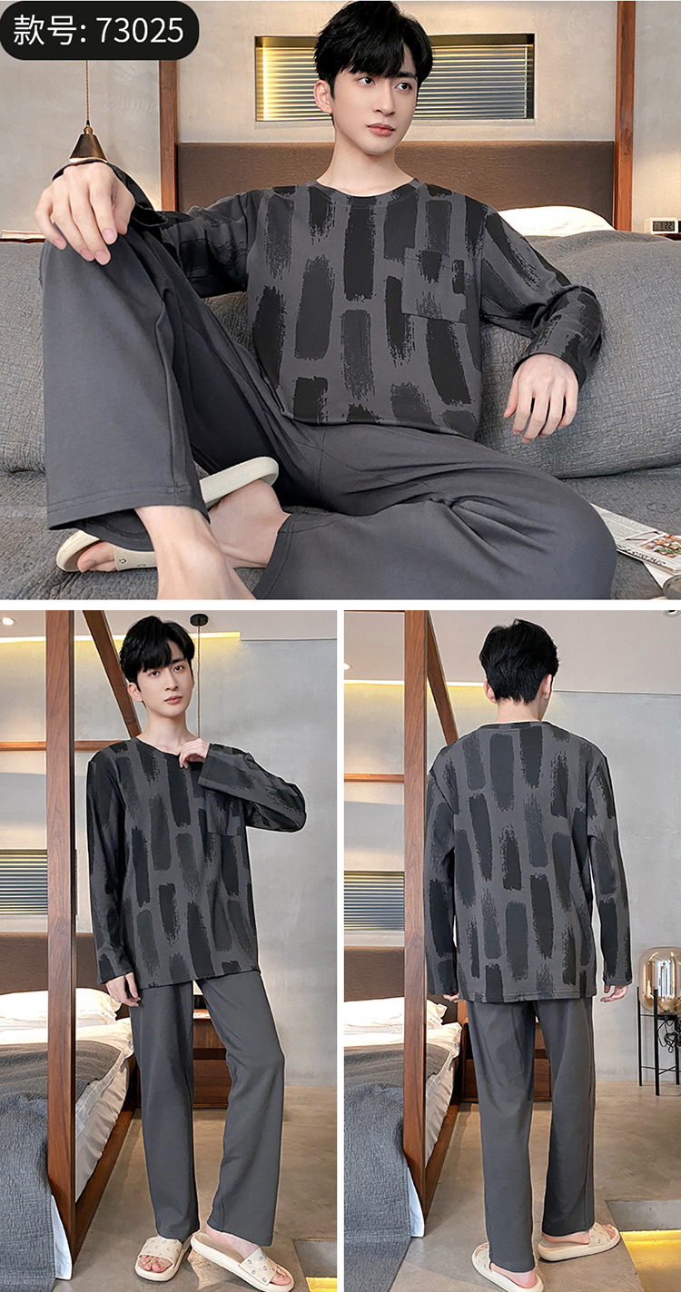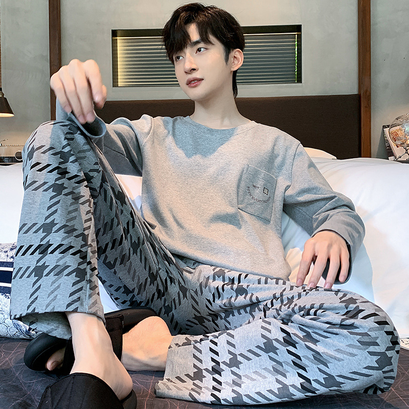 Оптовые мужские пижамы, весенне-осенний стиль, 100% хлопок, с длинным рукавом, новинка 2025 года, повседневные, больших размеров, для осени и зимы, можно носить на выход, домашняя одежда.