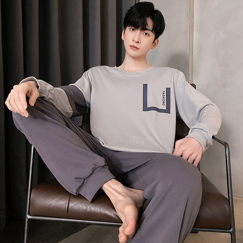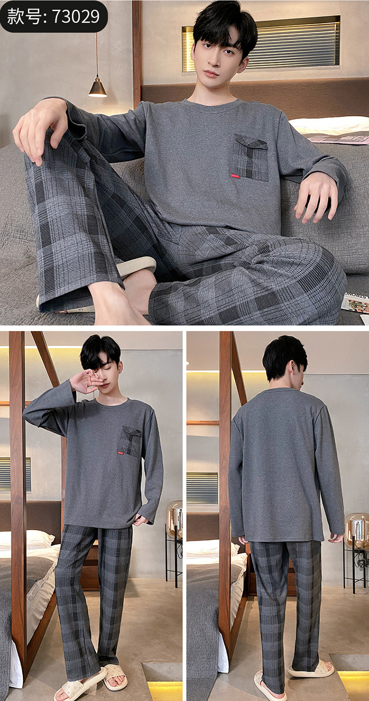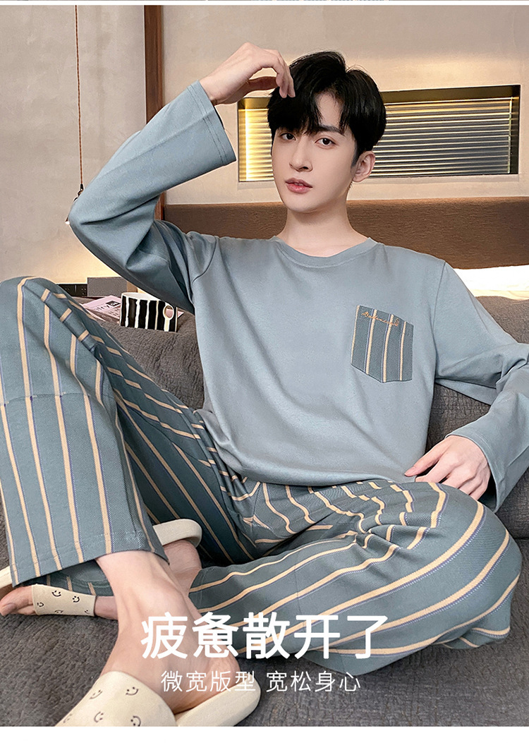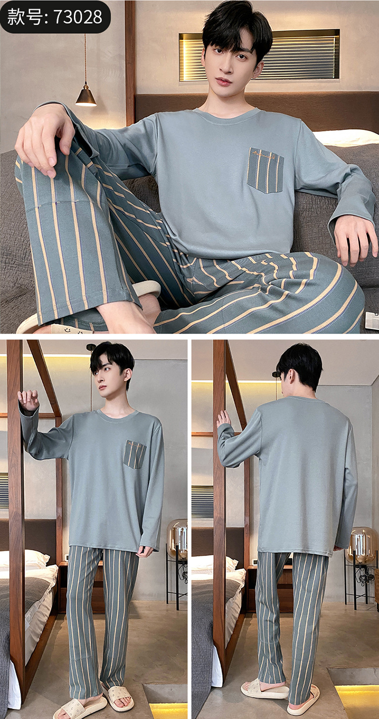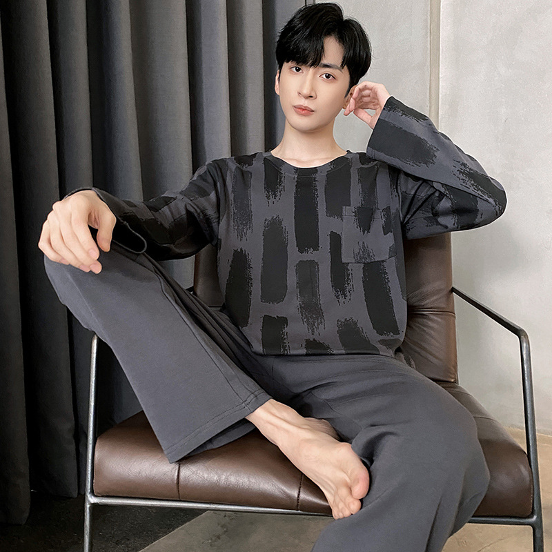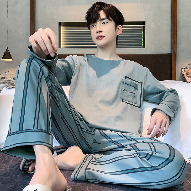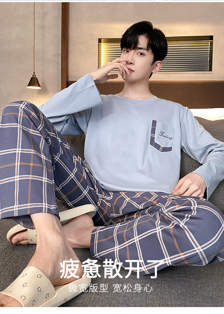 Оптовые мужские пижамы, весенне-осенний стиль, 100% хлопок, с длинным рукавом, новинка 2025 года, повседневные, больших размеров, для осени и зимы, можно носить на выход, домашняя одежда.