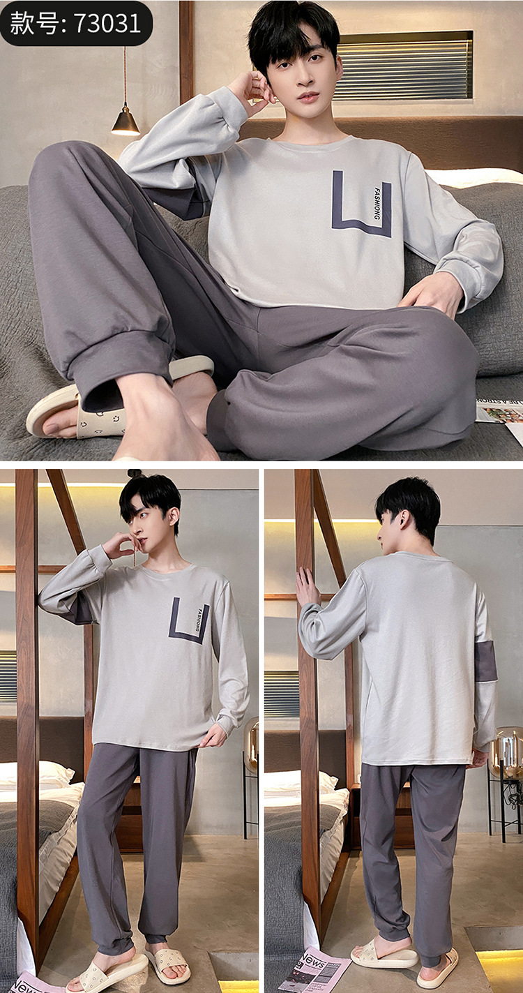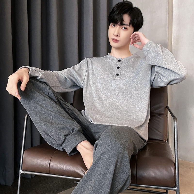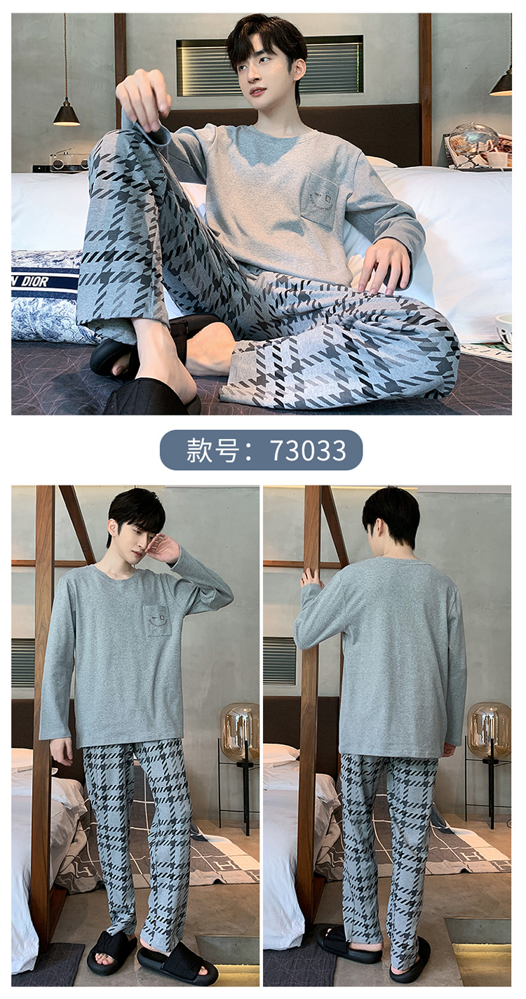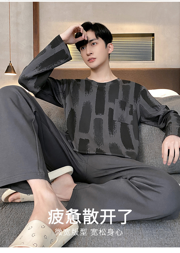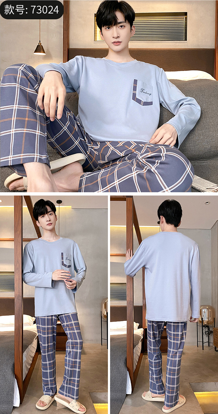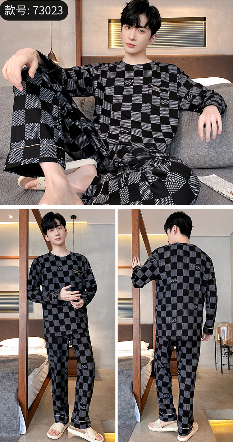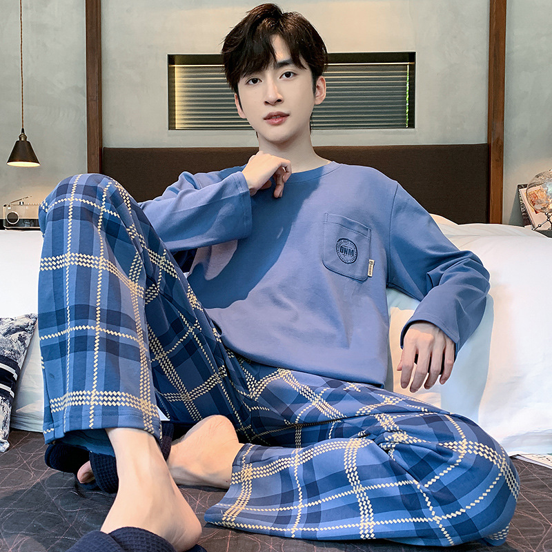 Оптовые мужские пижамы, весенне-осенний стиль, 100% хлопок, с длинным рукавом, новинка 2025 года, повседневные, больших размеров, для осени и зимы, можно носить на выход, домашняя одежда.
