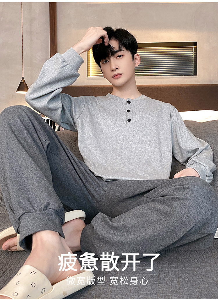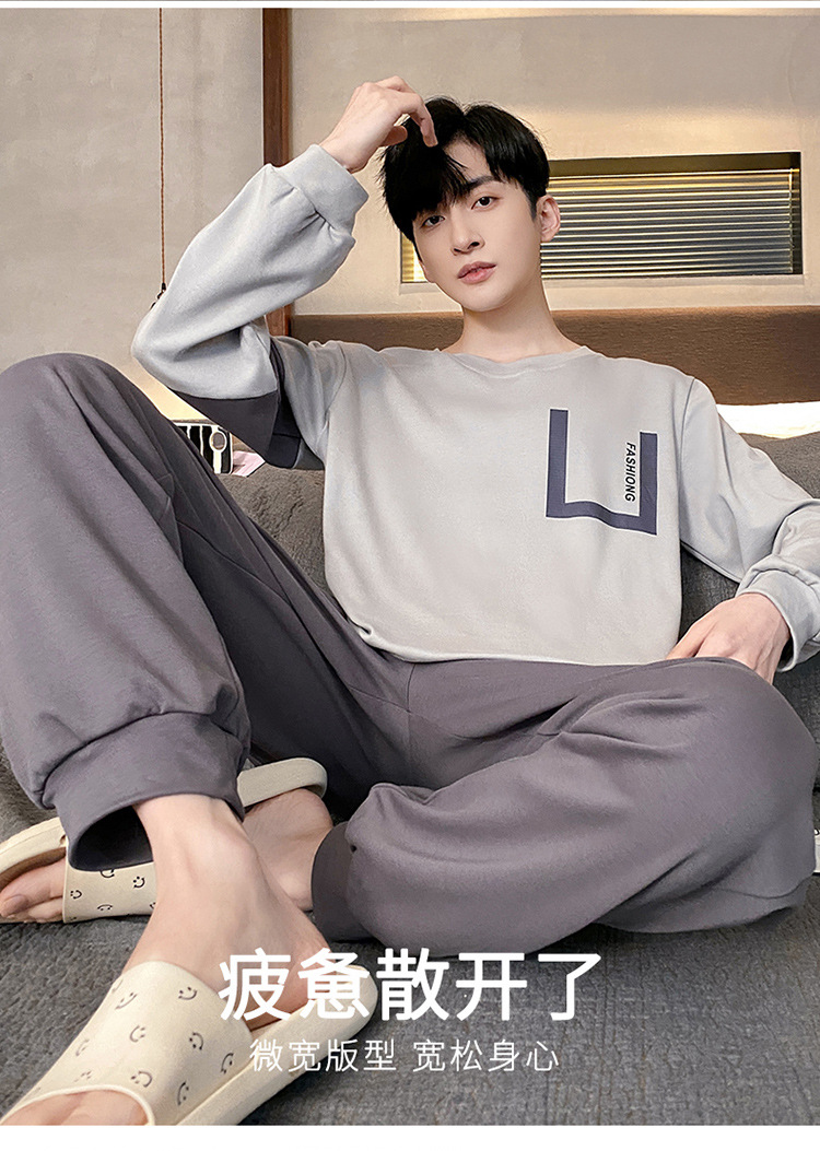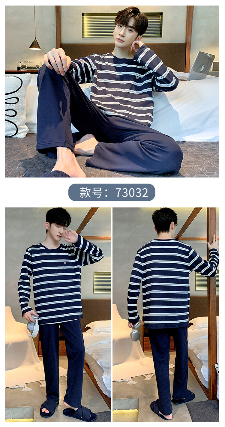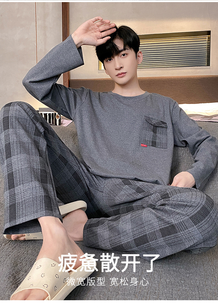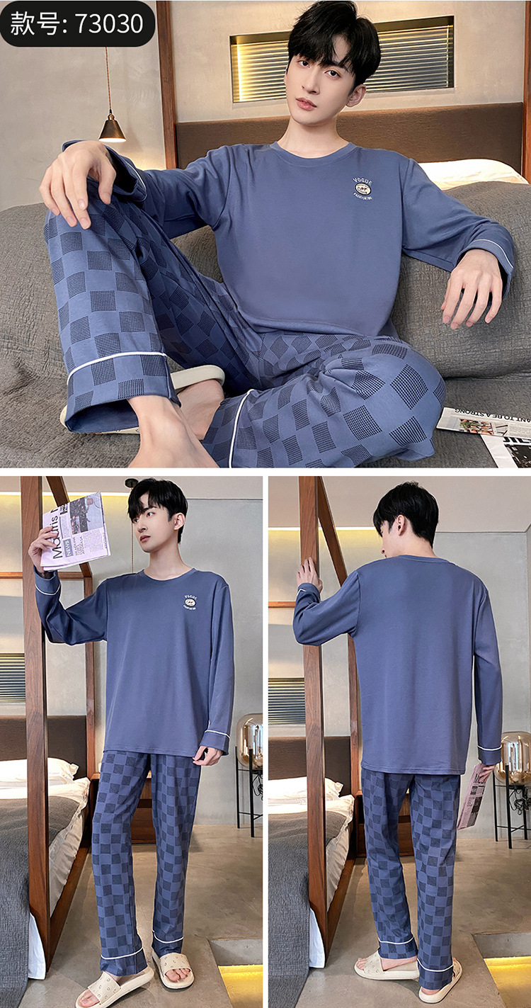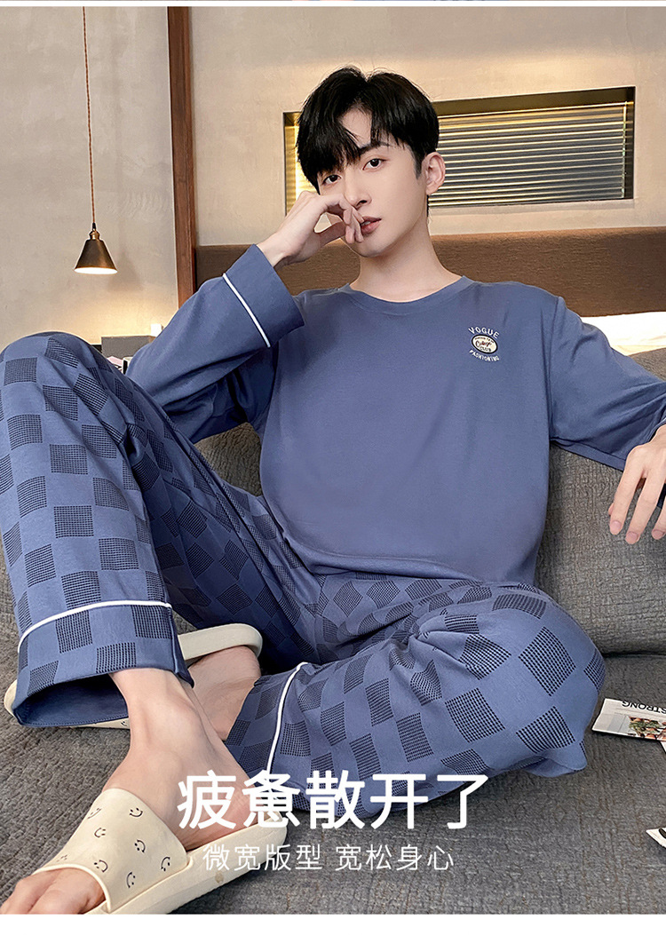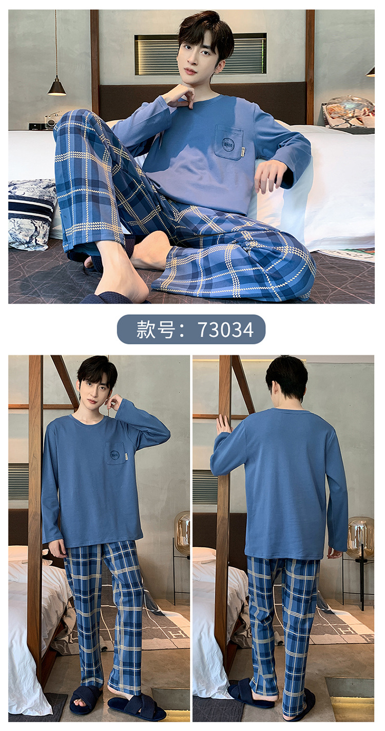 Оптовые мужские пижамы, весенне-осенний стиль, 100% хлопок, с длинным рукавом, новинка 2025 года, повседневные, больших размеров, для осени и зимы, можно носить на выход, домашняя одежда.