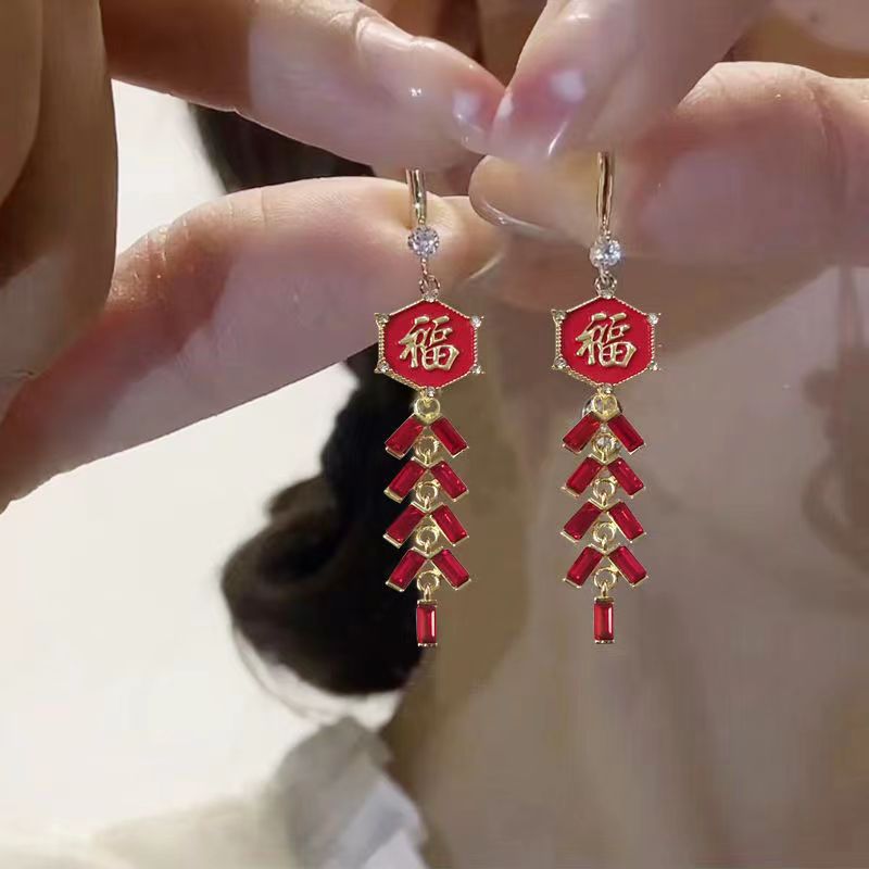 фонарик, петарды; веерная кисточка; красная кисточка цветок день; Серьги циркон фейерверки; Благословенные петарды с белыми бриллиантами; Красная счастливая петарда; Фонарь хрустальные петарды; Китайские петарды; Китайская кисточка с бриллиантами; Полная бриллиантовая кисточка; бабочка с кисточками цветок день