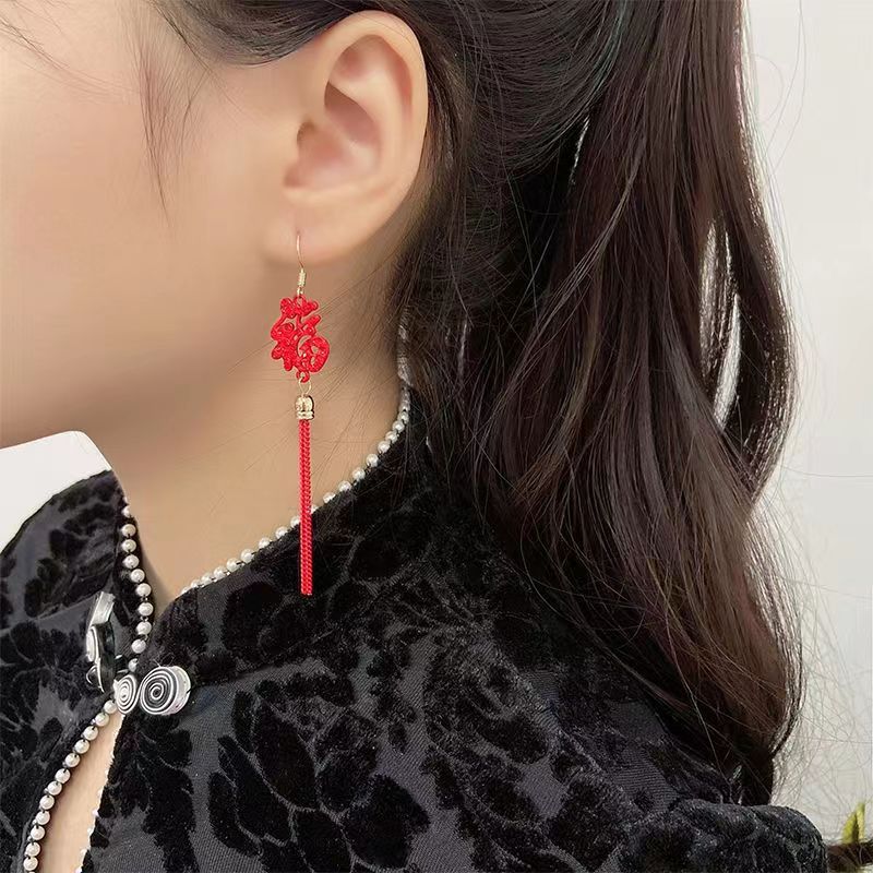 Китайский стиль фонарь фейерверк серьги с кисточками Новогодний подарок индивидуальные элегантные длинные серьги красные женские серьги