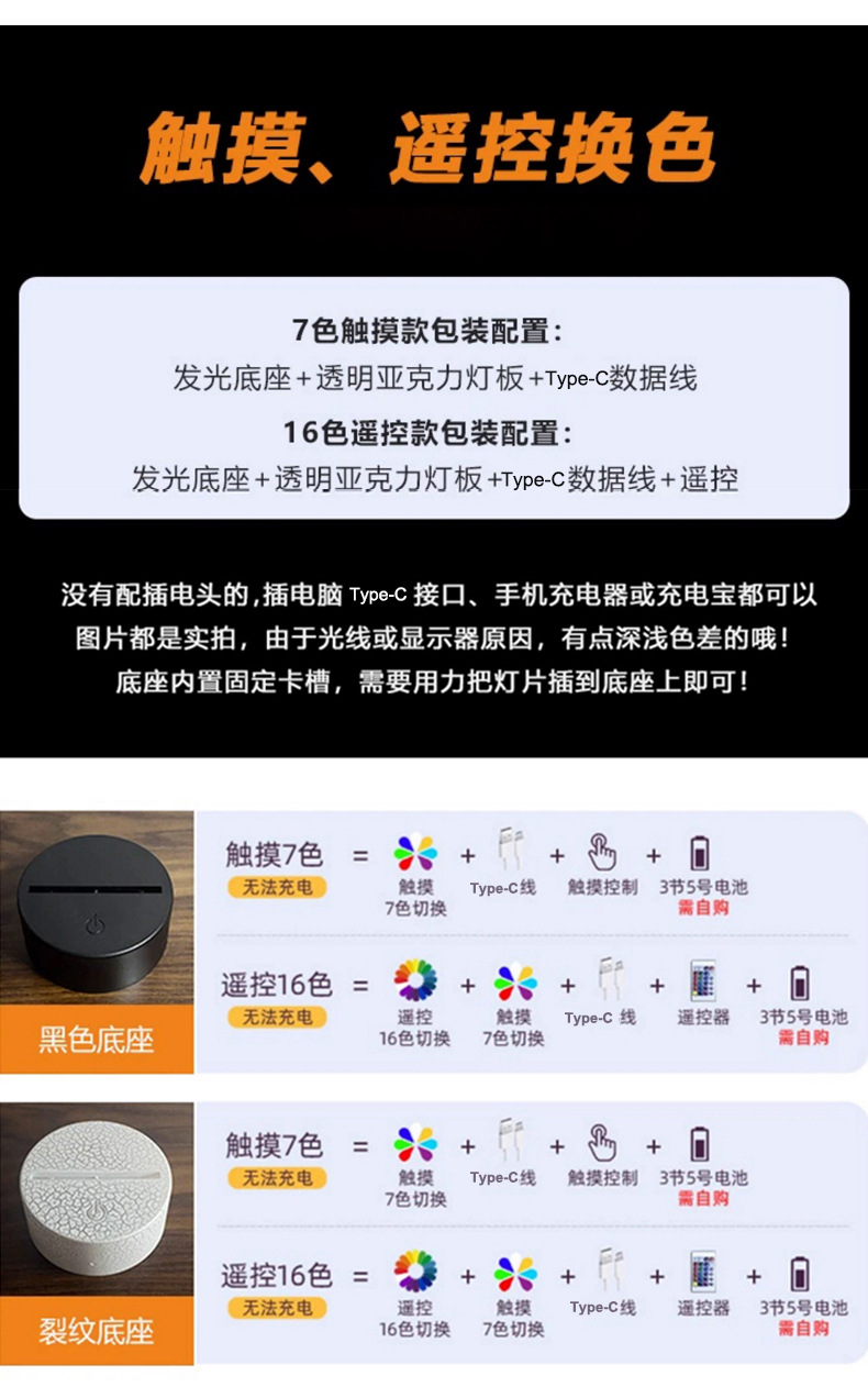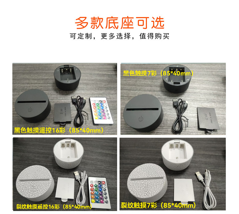 工厂直销3D小夜灯底座7彩触摸遥控创意礼品亚克力灯发光氛围装饰