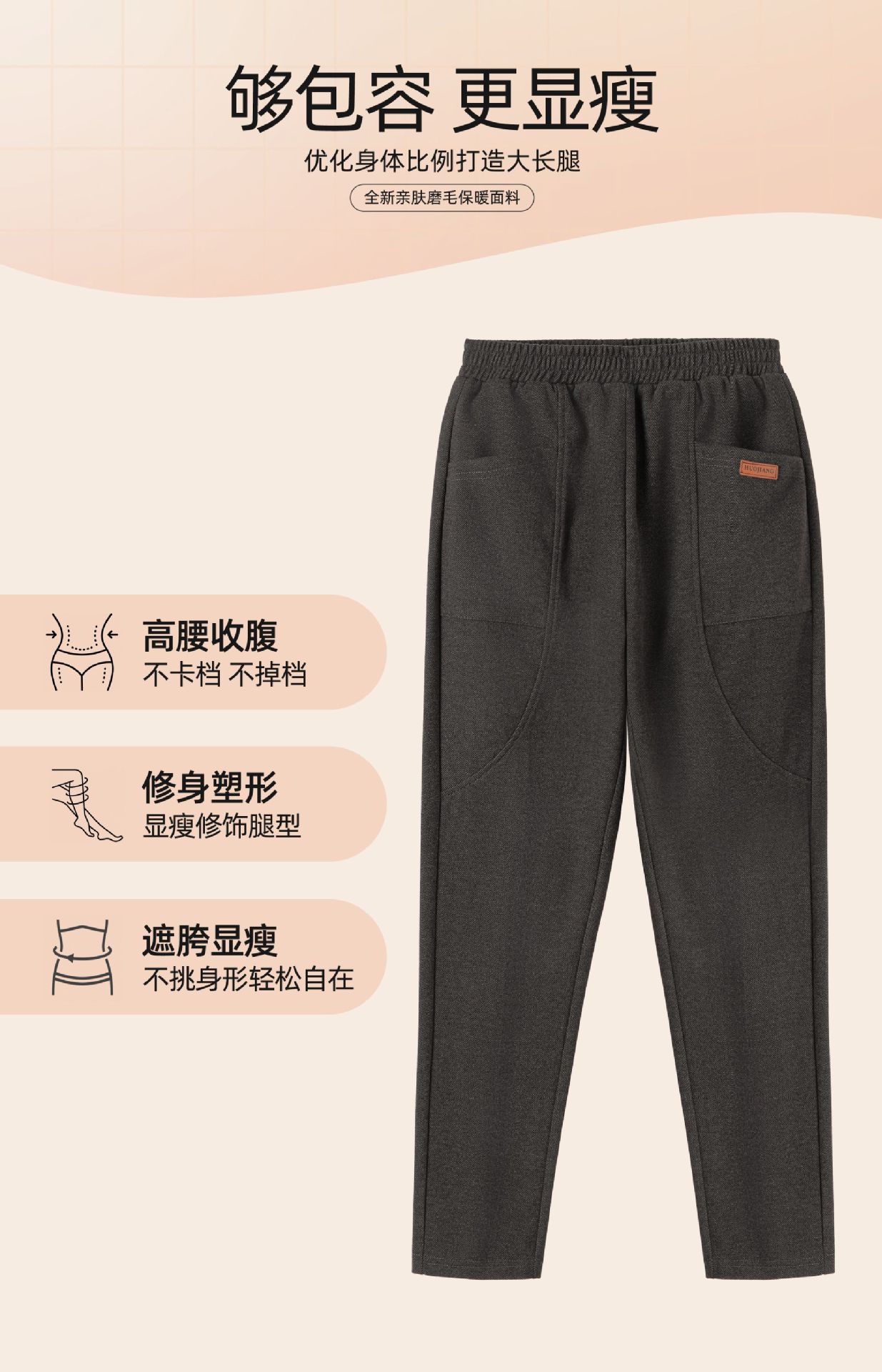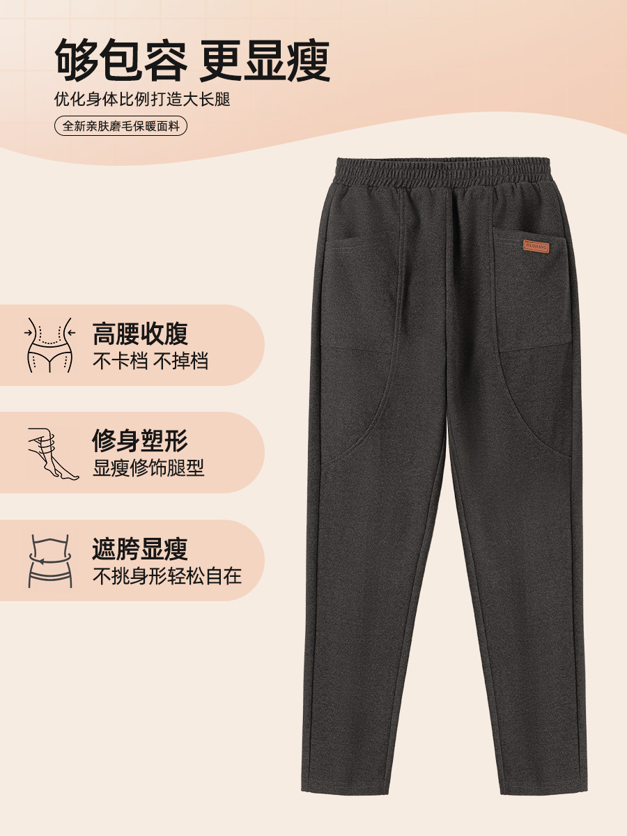 Повседневные брюки с флисовой подкладкой для полных девушек, женские облегающие брюки из Харлана на толстых ногах, женские эластичные черные брюки больших размеров с высокой талией для матери