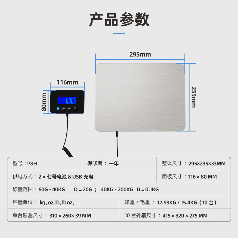 Трансграничные 200kg светодиодные портативные логистические электронные весы из нержавеющей стали, разделенные почтовые весы, маленькие экспресс-весы для посылок