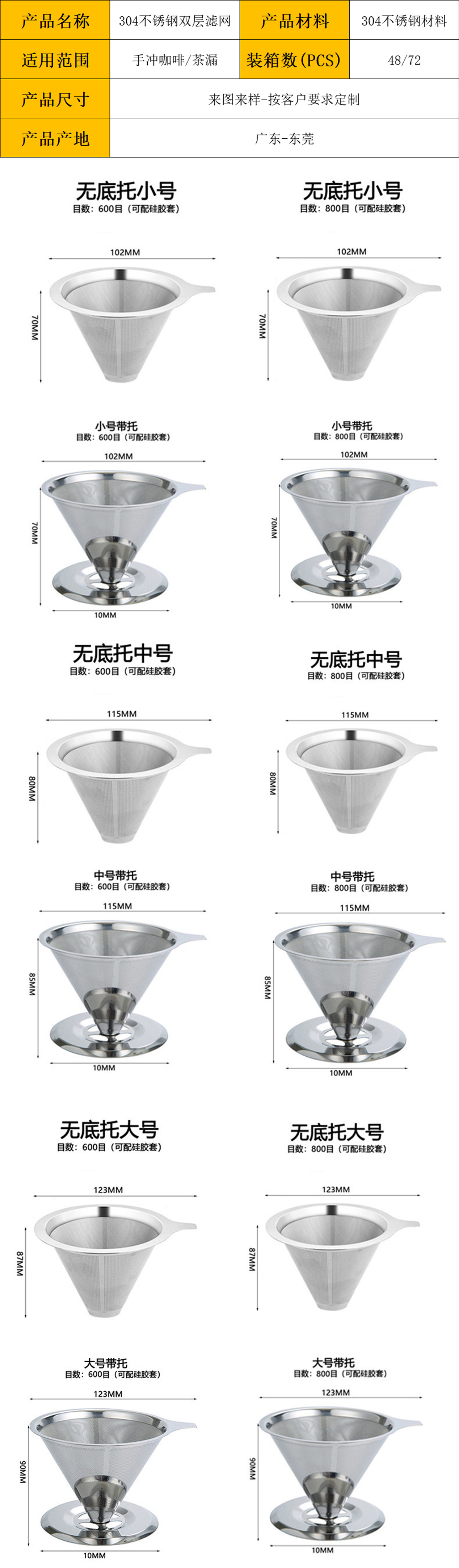 Заводская прямая продажа двухслойного кофейного фильтра с утечкой 800 меш из нержавеющей стали