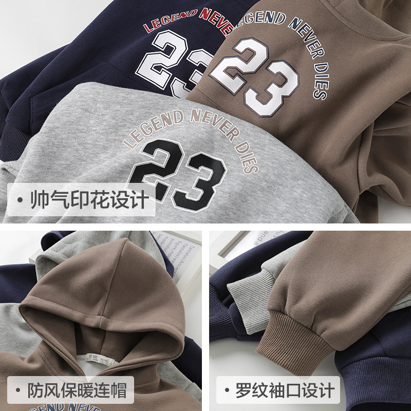 Детская Одежда для мальчиков Модная весна и осень 2023 новый детский красивый повседневный свободный свитер с капюшоном в Корейском стиле с надписью