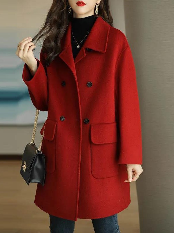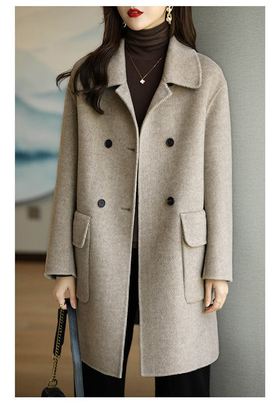 2024 осень-зима Новое шерстяное пальто средней длины шерстяное утолщенное теплое свободное маленькое пальто в Корейском стиле, уменьшающее возраст