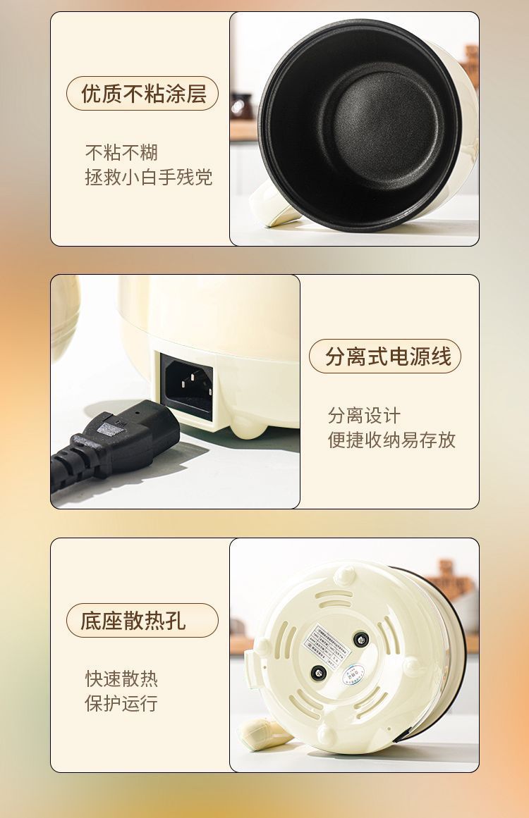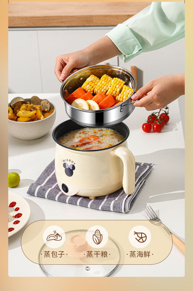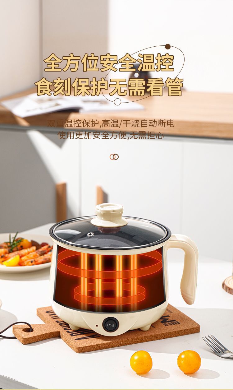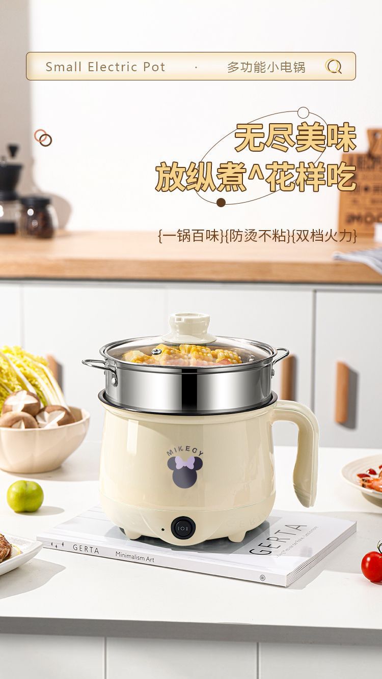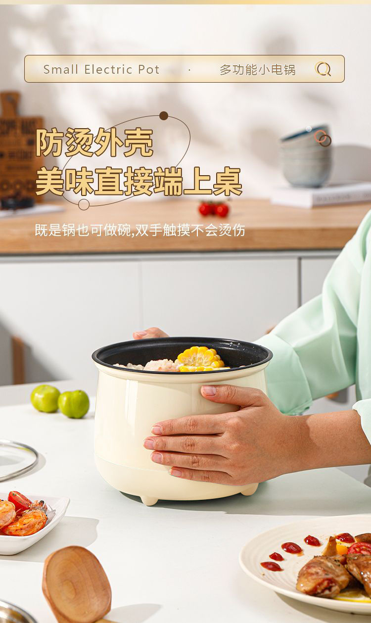 Электрический вок для приготовления пищи с антипригарным покрытием Бытовая маленькая электрическая кастрюля Общежитие Многофункциональный электрический горячий горшок Приготовление риса Электрическая кастрюля