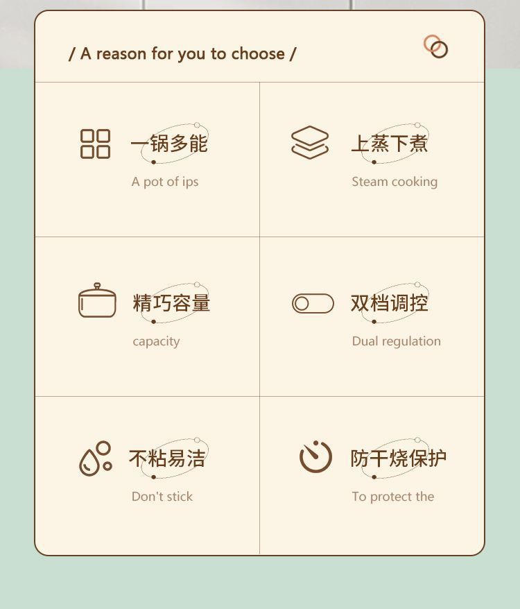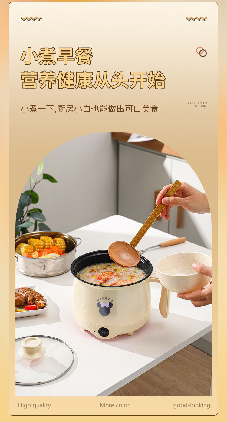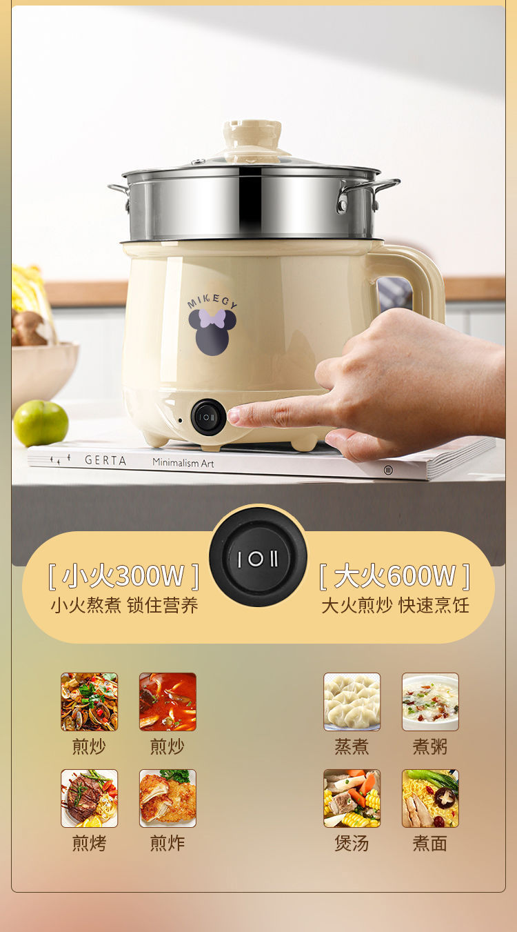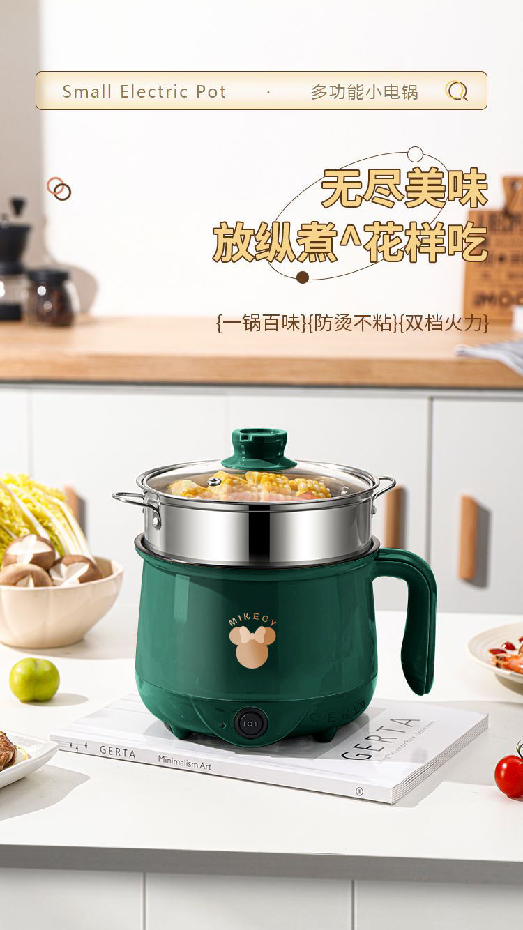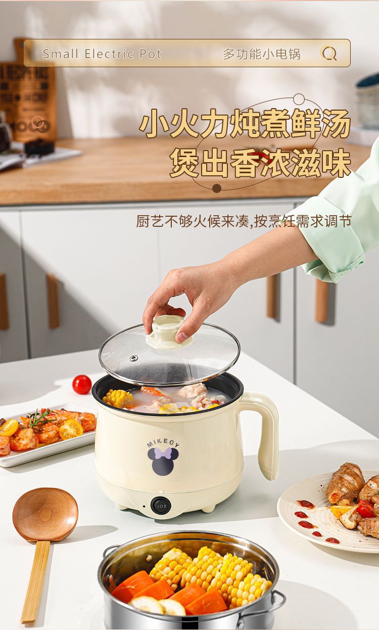 Электрический вок для приготовления пищи с антипригарным покрытием Бытовая маленькая электрическая кастрюля Общежитие Многофункциональный электрический горячий горшок Приготовление риса Электрическая кастрюля