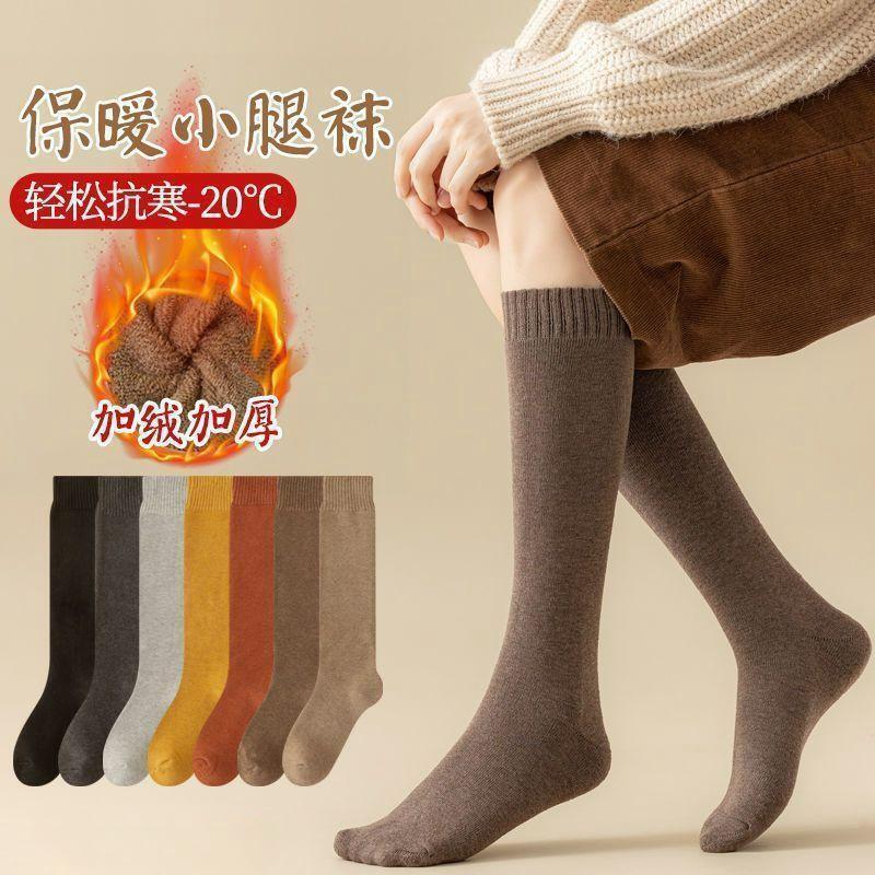 Толстые носки до голени, теплые носки на флисовой подкладке, женские чулки, зимнее давление, узкие ноги, осенне-зимние чулки, женские носки-полотенца