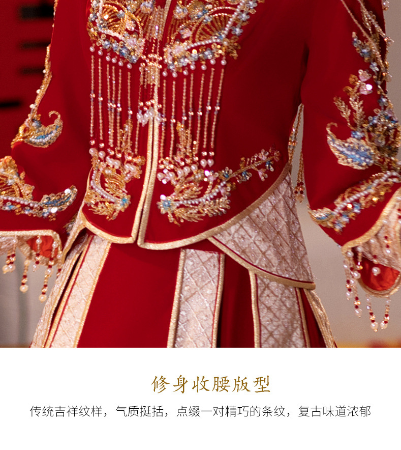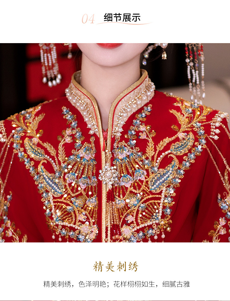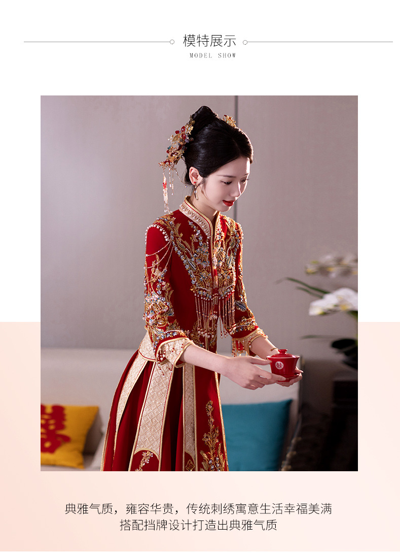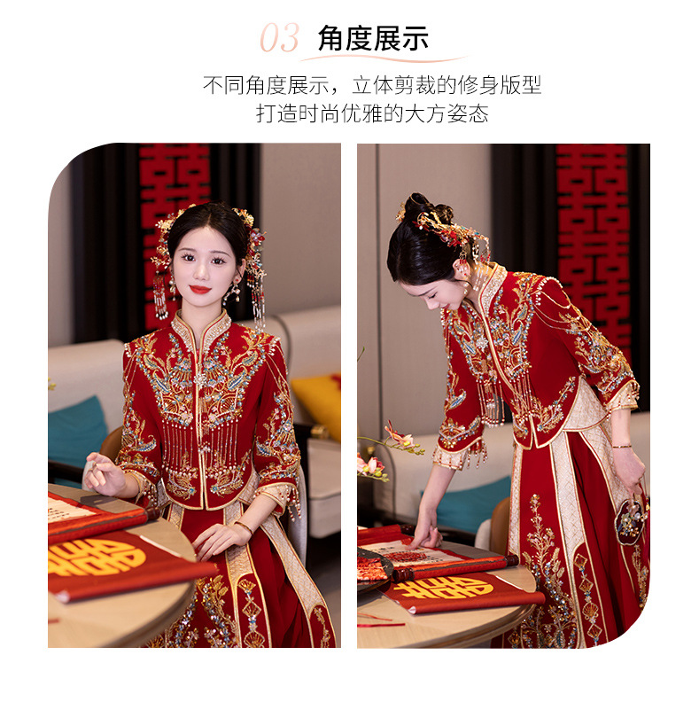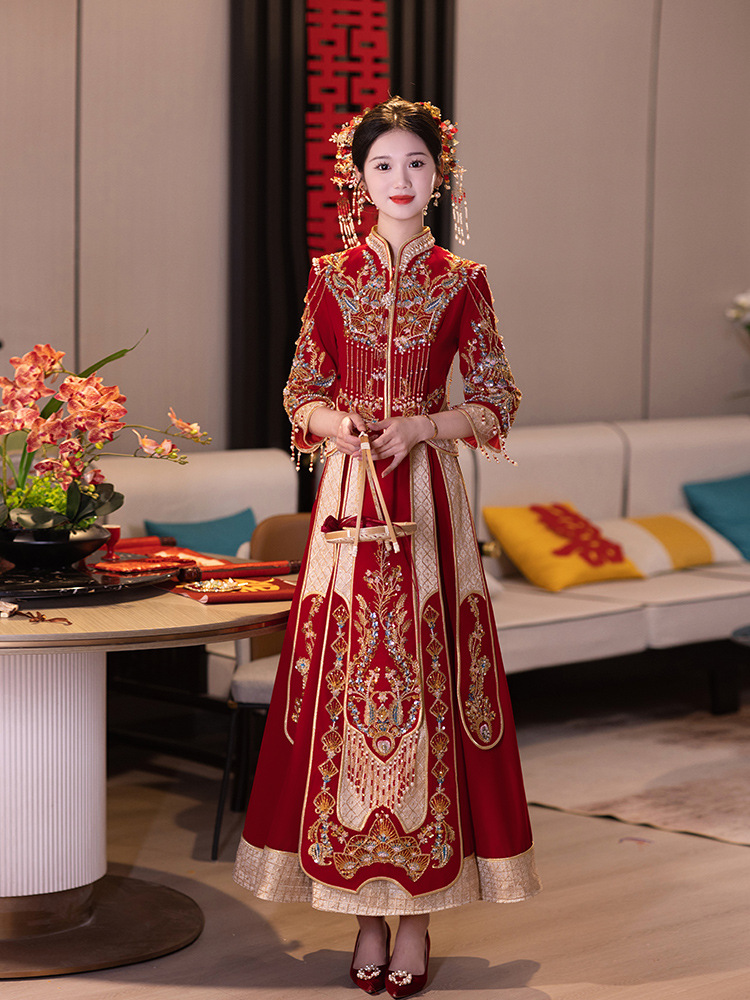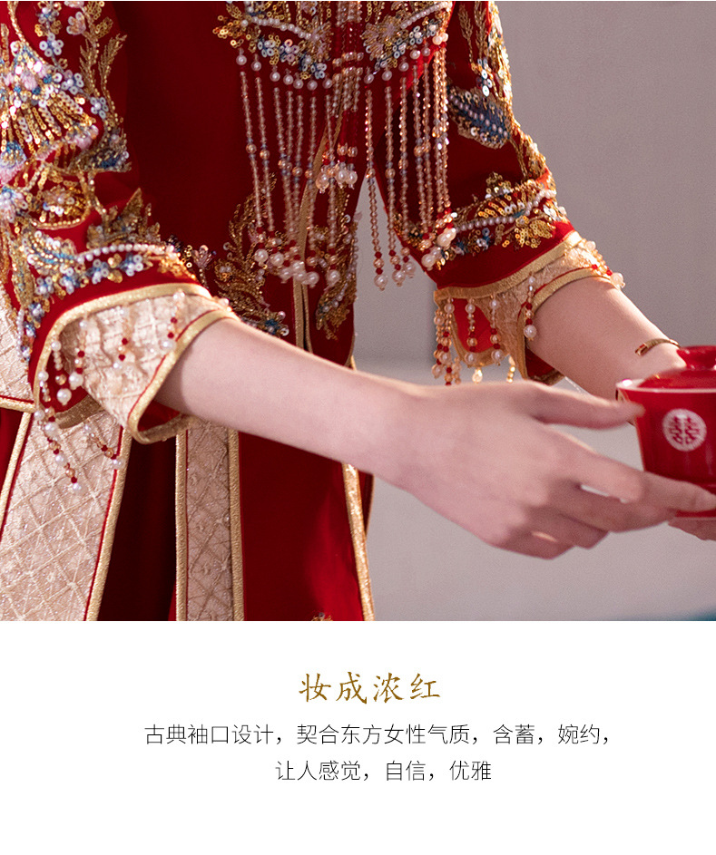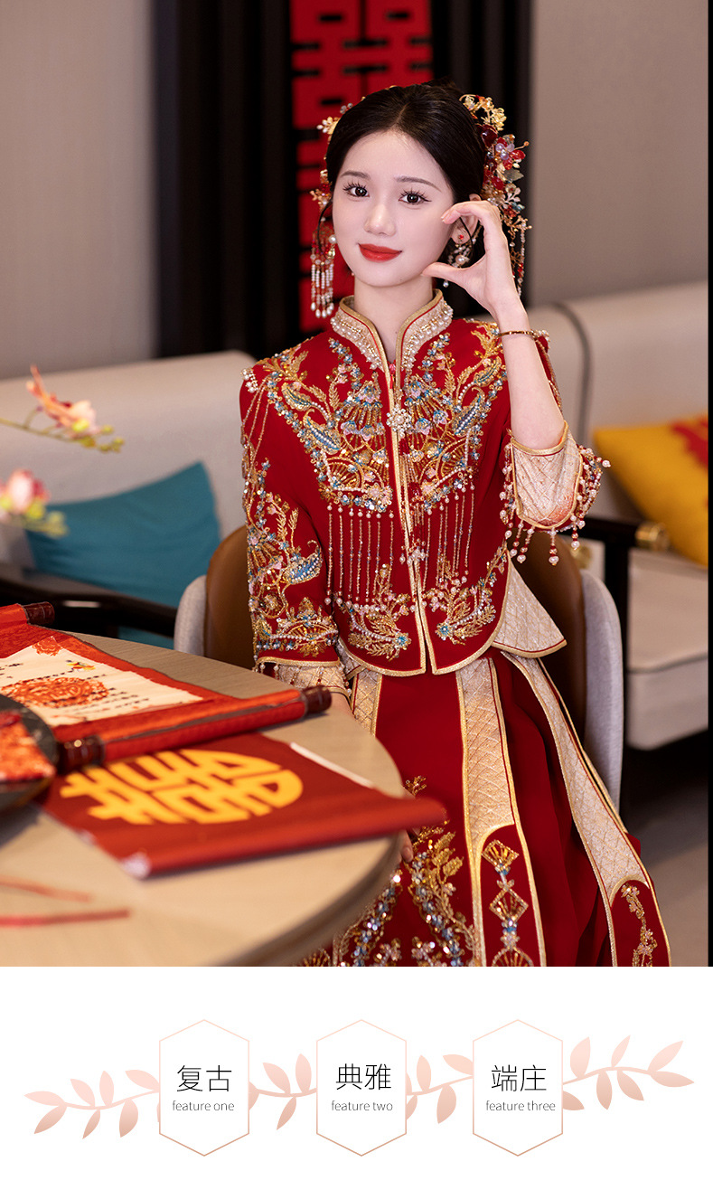Традиционное китайское свадебное платье для невесты, платье с изображением дракона и феникса для свадьбы и торжественных тостов.