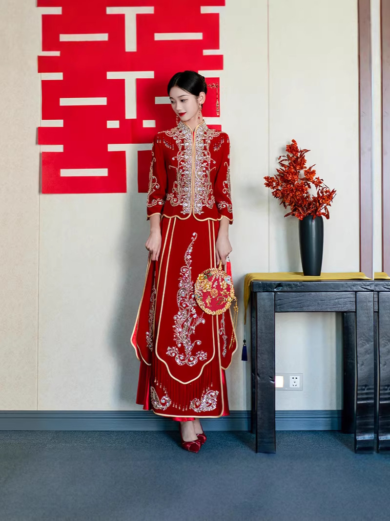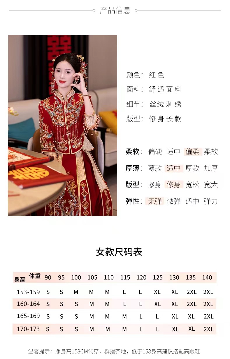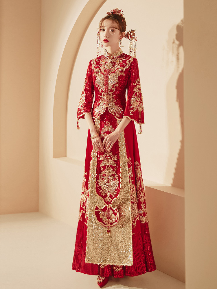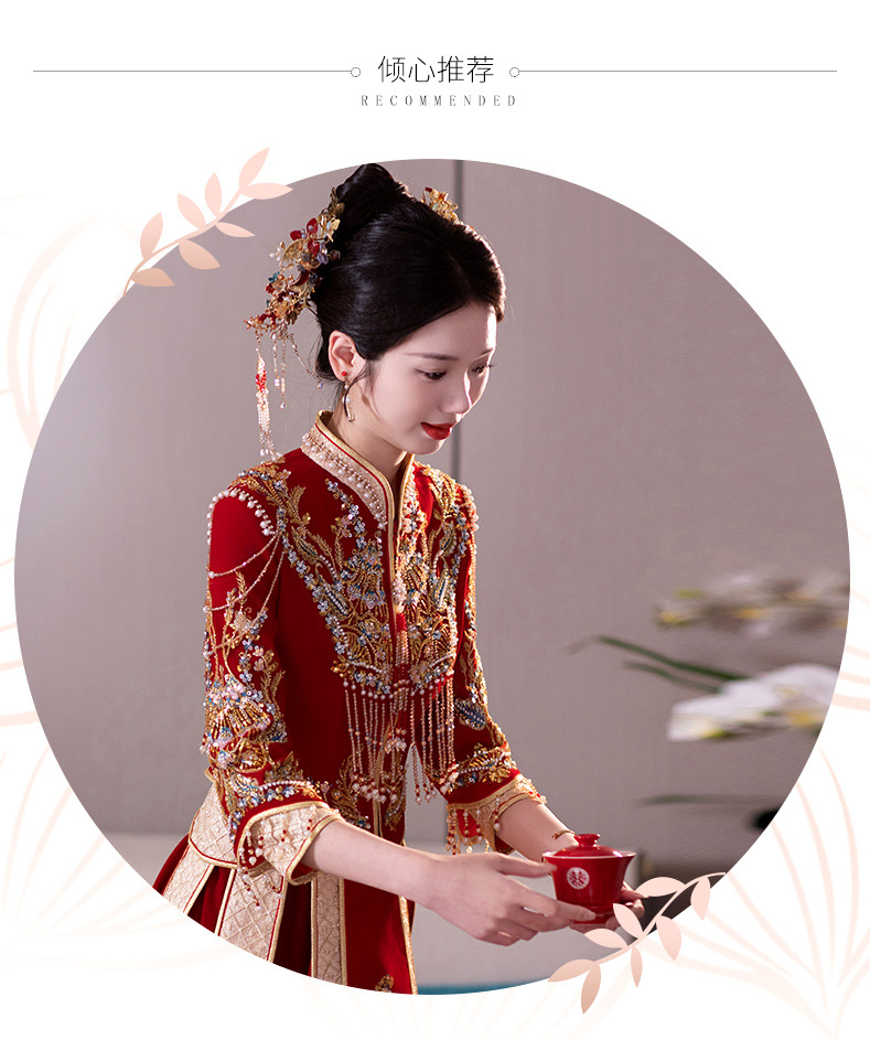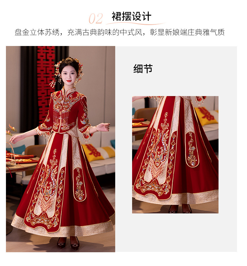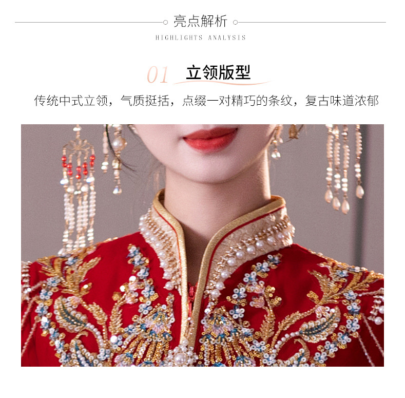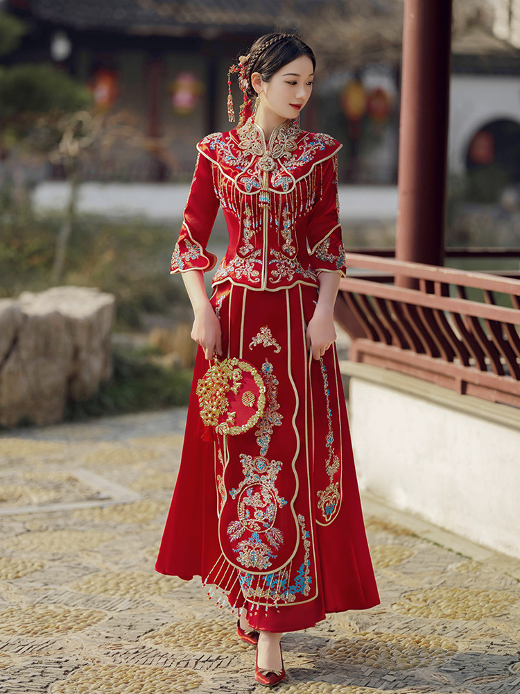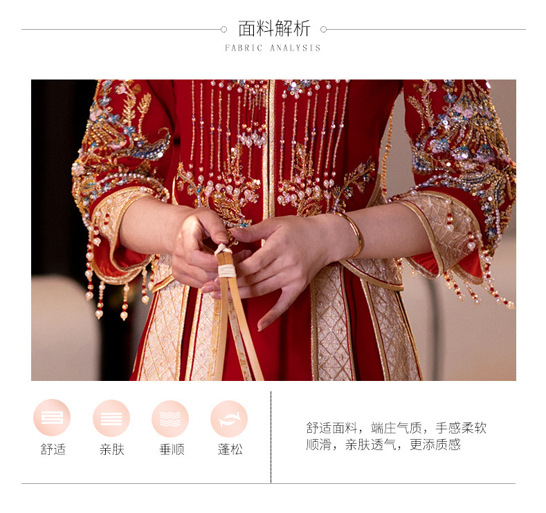 Традиционное китайское свадебное платье для невесты, платье с изображением дракона и феникса для свадьбы и торжественных тостов.