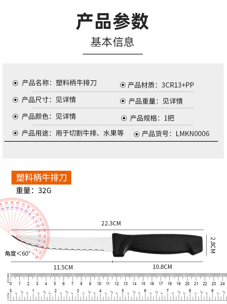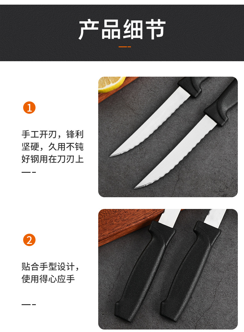 Нержавеющая сталь кухонная зазубренная говяжий нож пластиковая ручка стейк из нержавеющей стали острый стейк нож