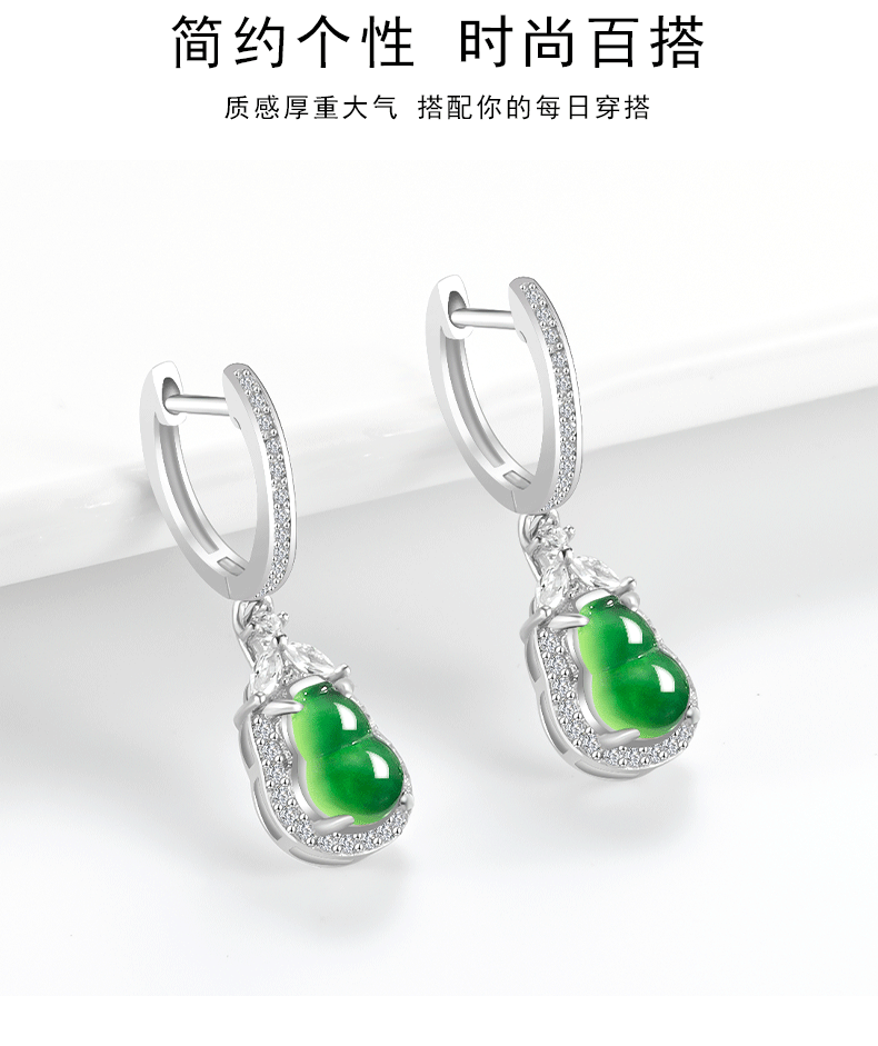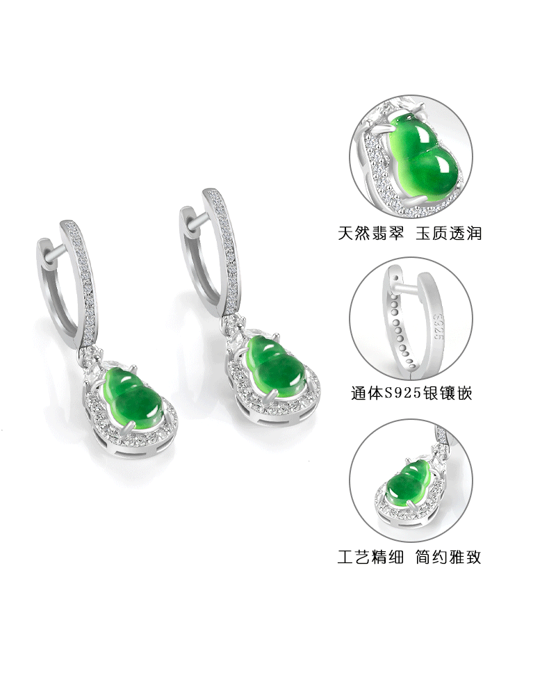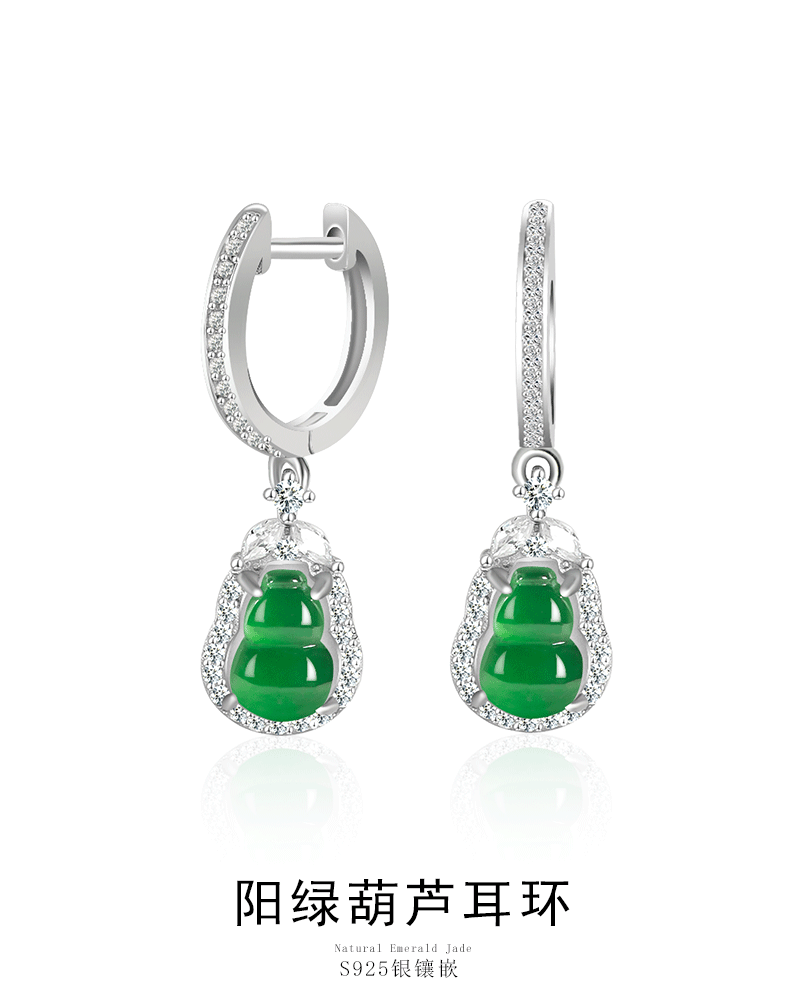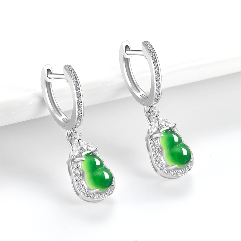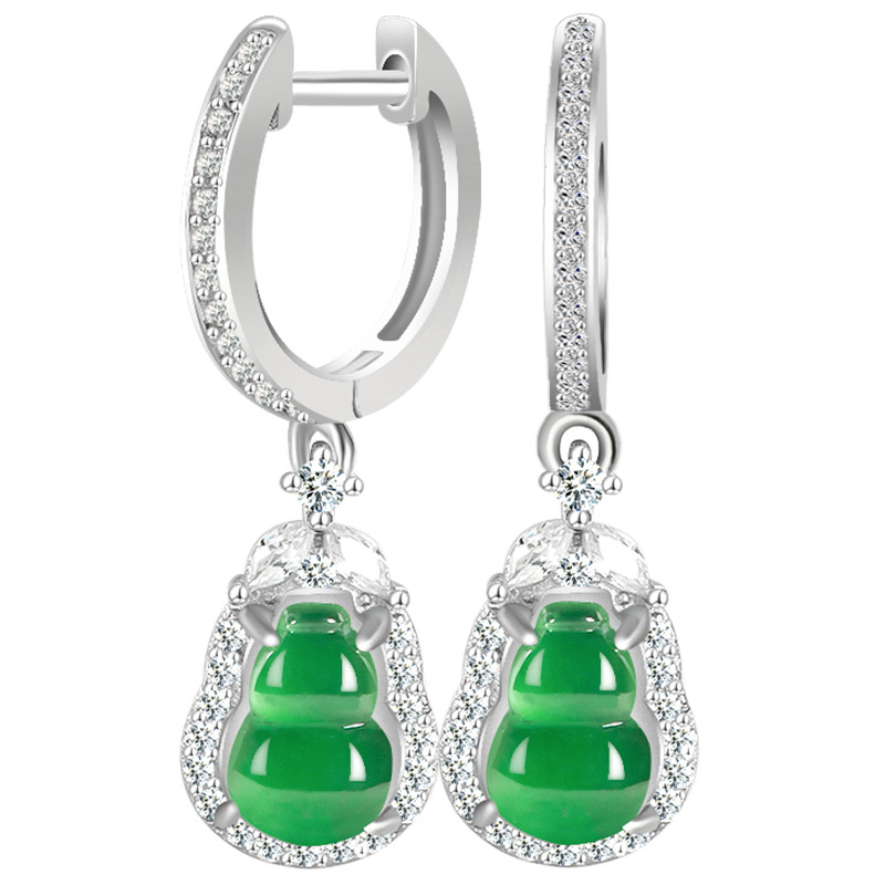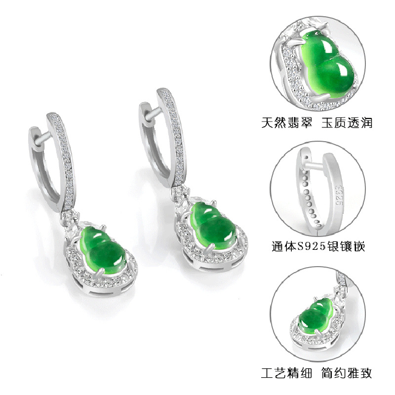 Натуральные товары Нефритовое солнце зеленые серьги тыквы ледяной нефрит S925 инкрустированные серебром женские высококачественные модные серьги