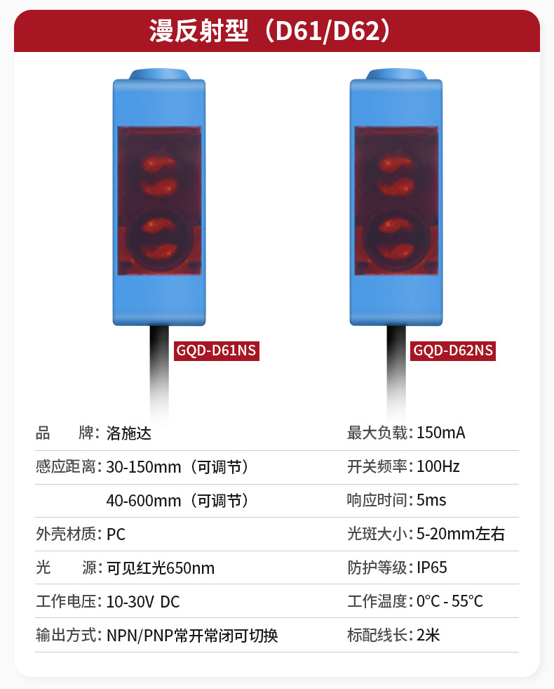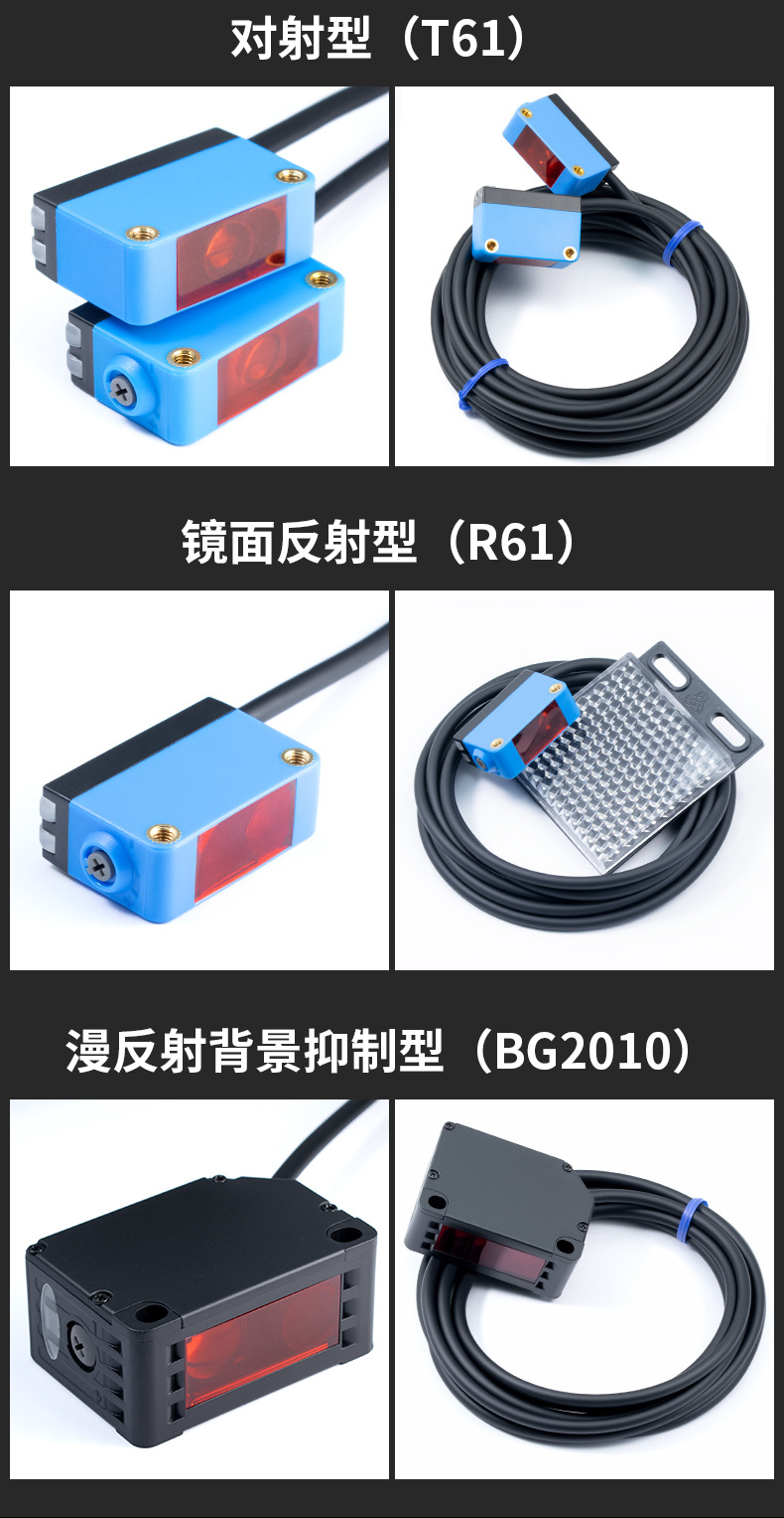 GQD-D61NS Отражающий выход NPN; GQD-D61PS отражающий выход PNP; GQD-D62NS Светоотражающий выход NPN на большие расстояния; GQD-D62PS отражающий выход PNP на большие расстояния; GQT-T61NS-shot выход NPN; GQT-T61PS-to-beam Выход PNP; GQL-R61NS зеркальный отражающий выход NPN; GQL-R61PS зеркальный отражающий выход PNP; GQD-BG2010NS фон подавляет выход NPN; Подавить выход PNP GQD-BG2010PS фон; GOD-BG442NS красный свет рассеянного типа, выход NPN; GQD-BG442PS красный свет рассеянного типа, выход PNP