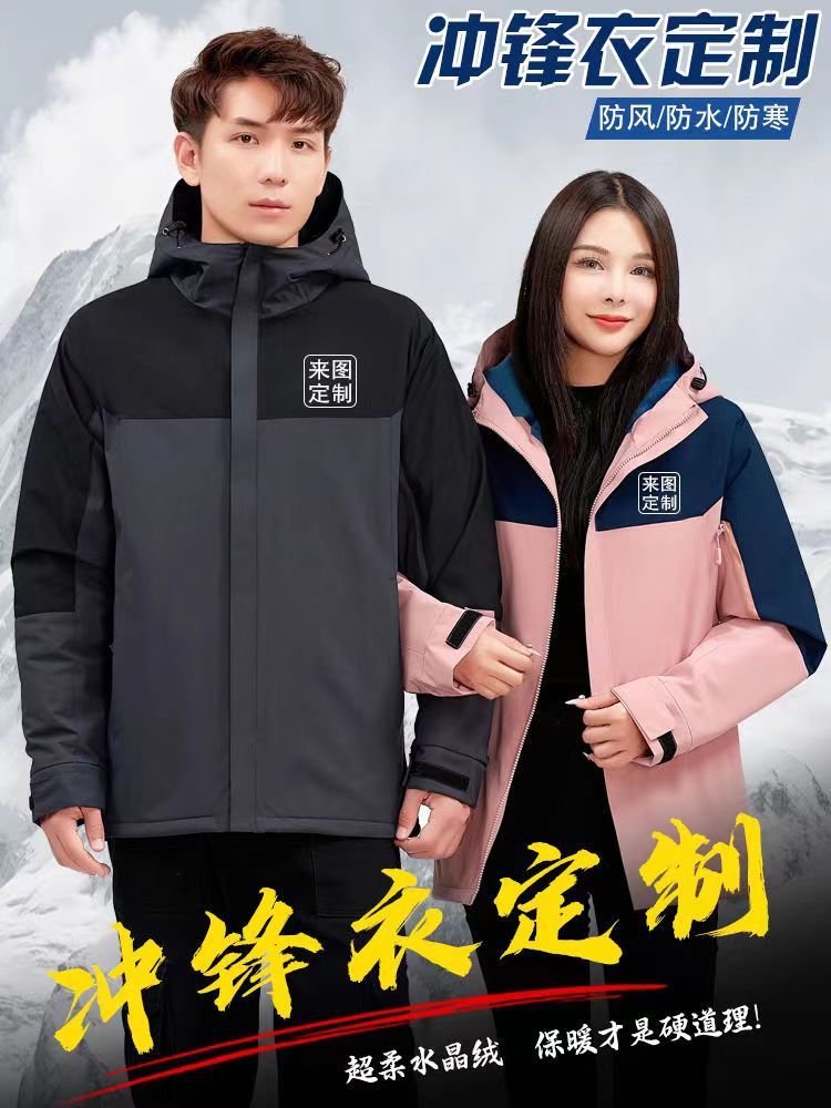Осенне-зимняя утолщенная одежда для зарядки Рабочая одежда с логотипом на заказ Уличная непромокаемая ветрозащитная куртка на флисовой подкладке