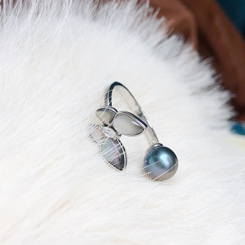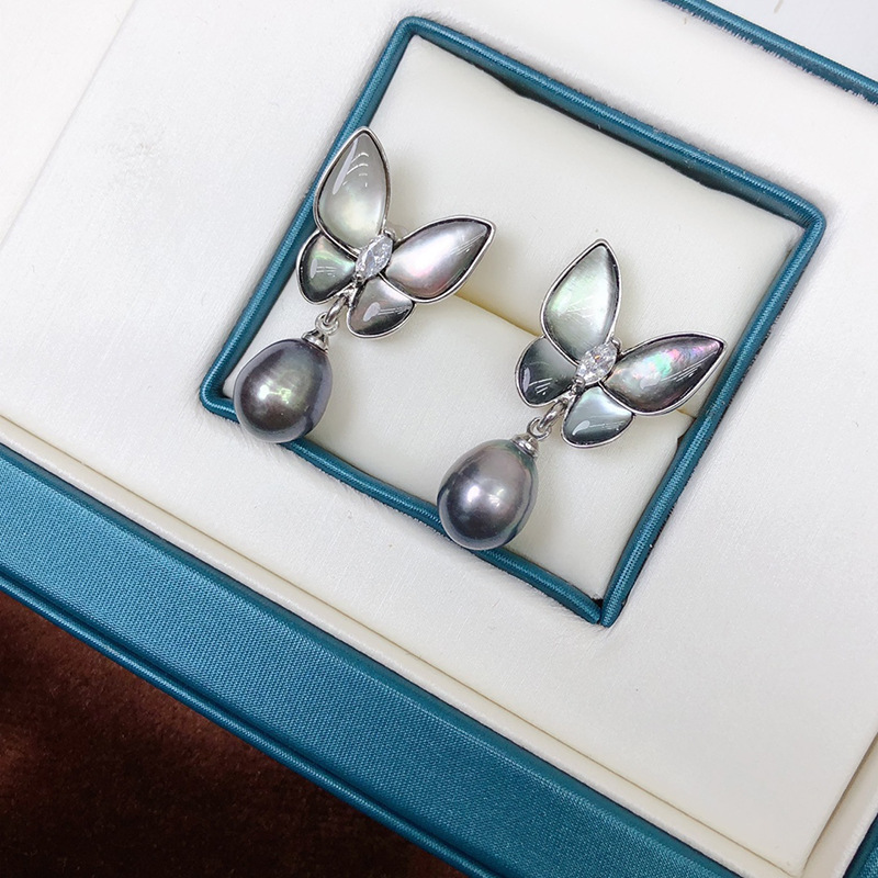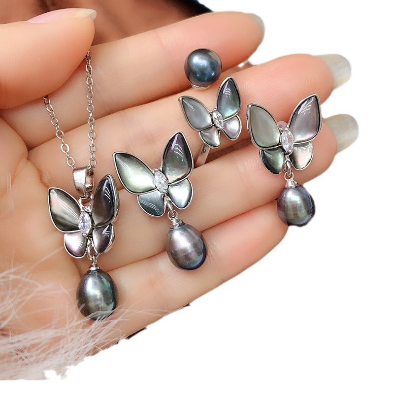 Новый пресноводный перламутровый костюм с бабочкой, женские модные украшения, серьги с жемчужной подвеской, кольцо, набор из трех предметов