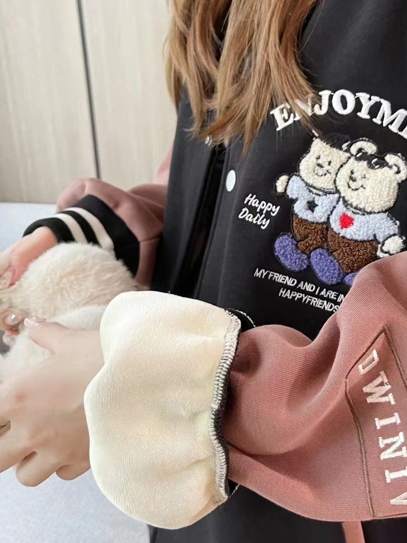 重工刺绣冬季加绒加厚立领女棒球服宽松中长版外套休闲韩版学院风