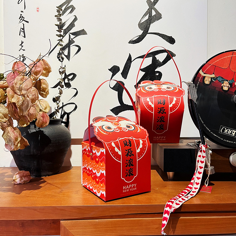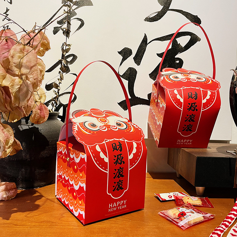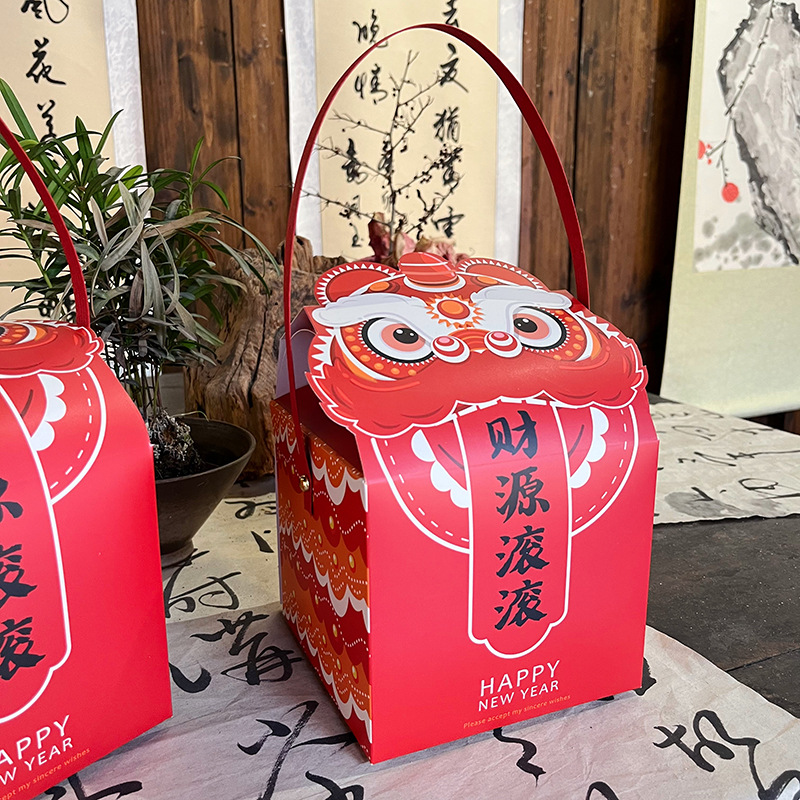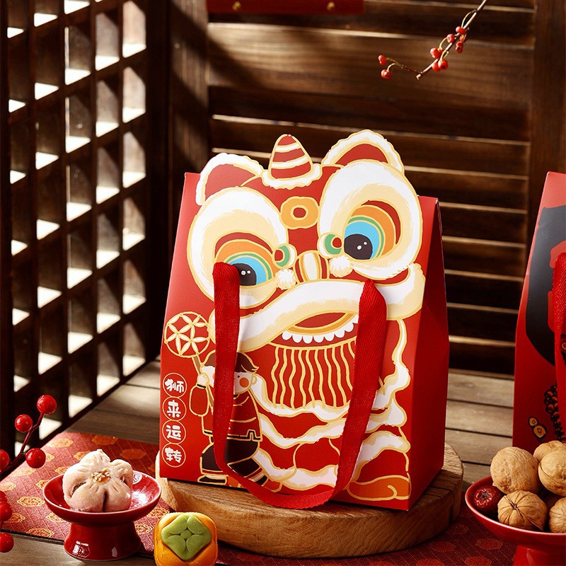 Новогодний Танец Льва Новогодняя Подарочная Коробка Снежинка Хрустящие Конфеты Печенье На Вынос Упаковочная Коробка Год Дракона Танец Льва Закуска Подарочная Упаковка Картонная Коробка
