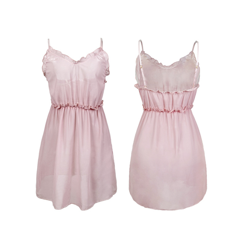 Филиппинская рифма фабричные товары прямые поставки сексуальные шифоновые перспективные пижамы мягкие и гладкие однотонные подтяжки Ночная Рубашка домашняя одежда F1016