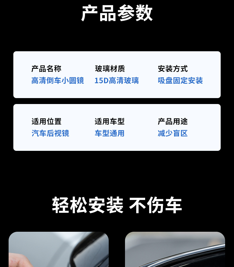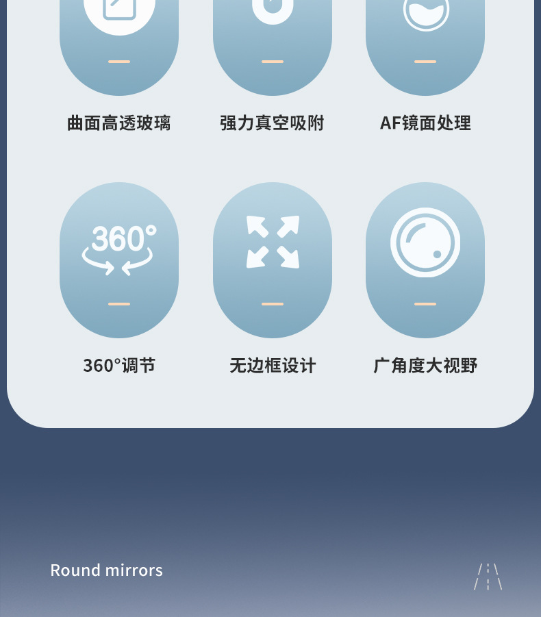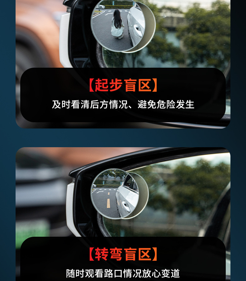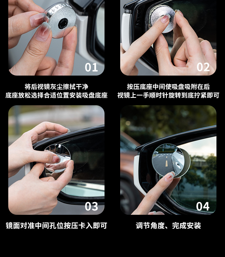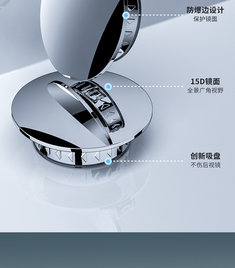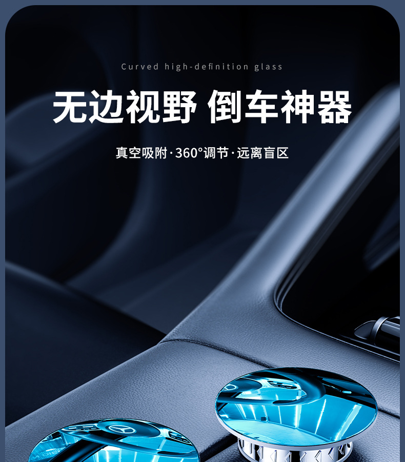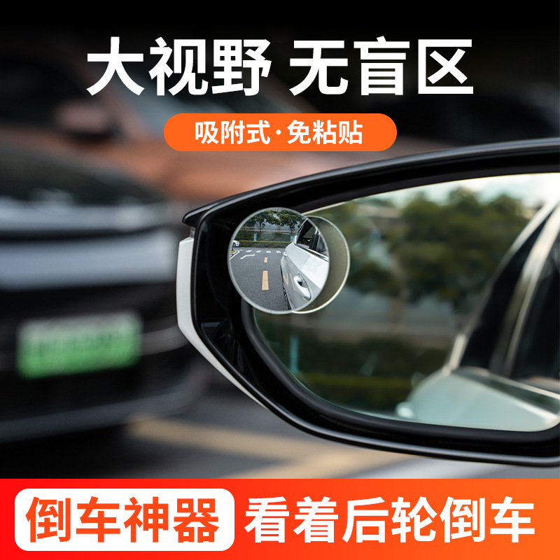 Автомобильное круглое зеркало, крепление на присоске, безрамочное зеркало для слепых зон, регулируемое на 360 градусов, большое поле зрения, сверхширокий угол обзора.