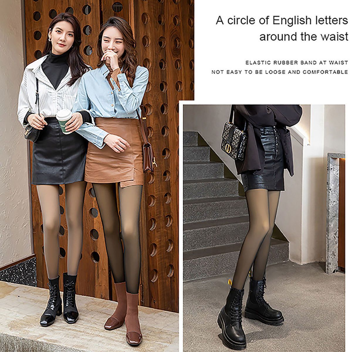 VIP стюардесса серая кожа-прозрачные брюки на флисовой подкладке женские осенне-зимние толстые теплые черные чулки женские Искусственные телесные прозрачные колготки