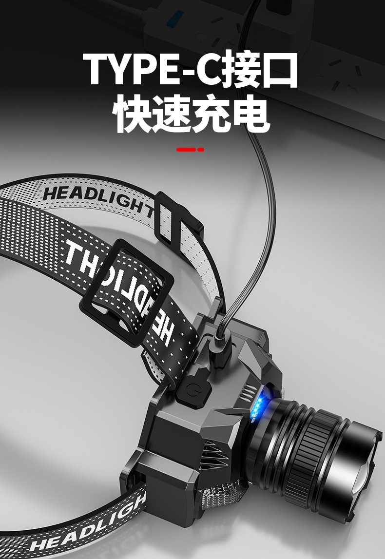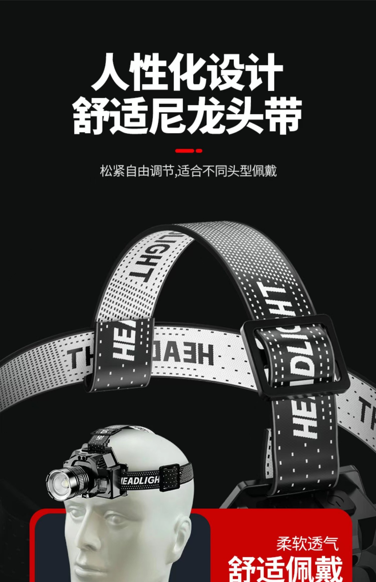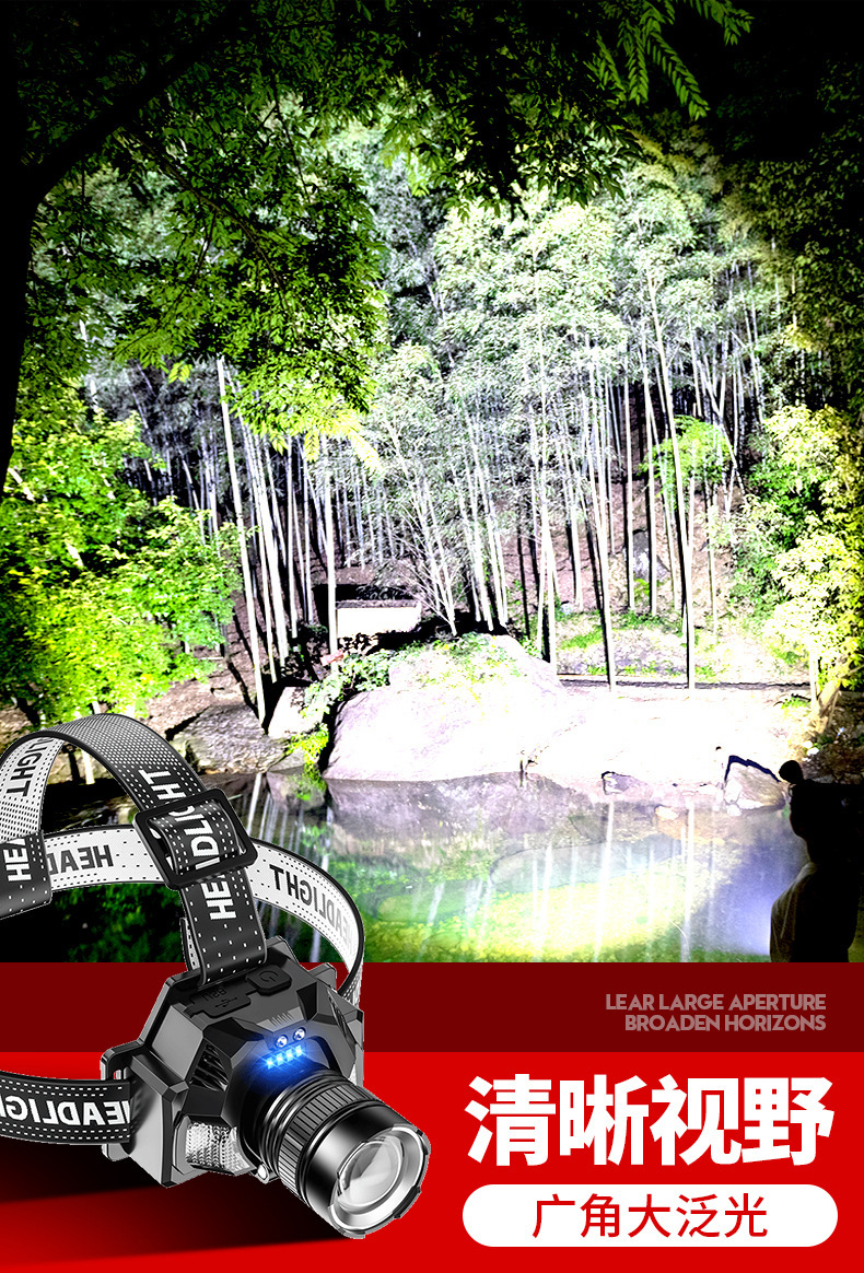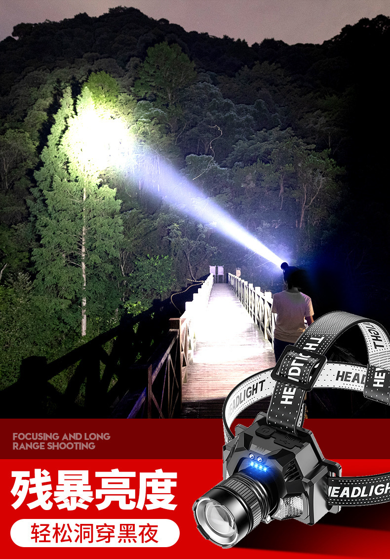 Сильная легкая фара, светодиодный перезаряжаемый зум, дальний головной фонарик, супер яркий фонарь для ночной рыбалки, Шахтерская лампа для трансграничной рыбалки