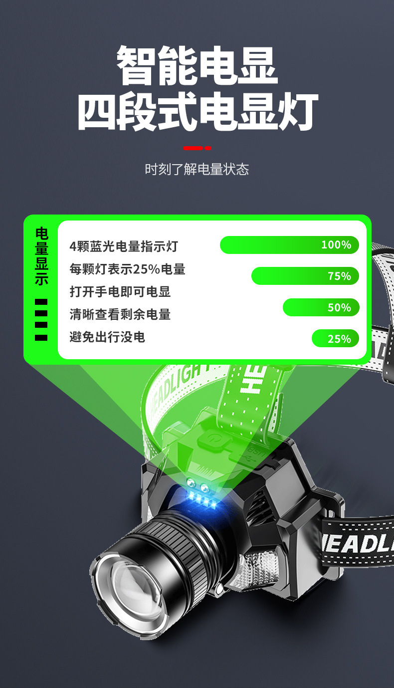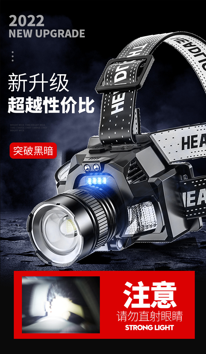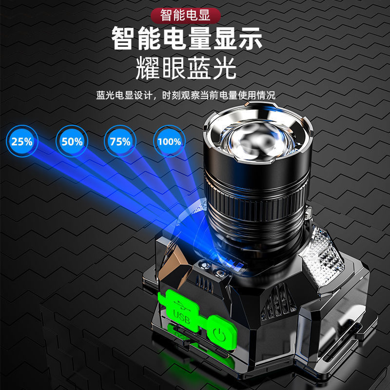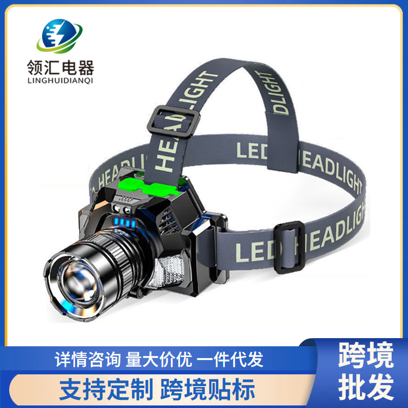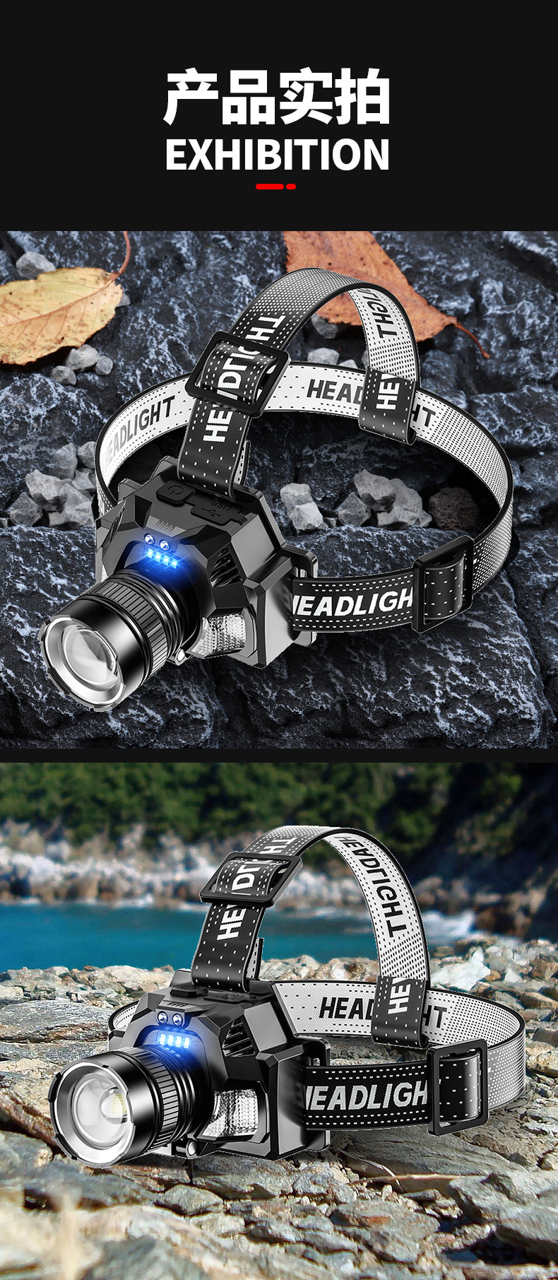 Сильная легкая фара, светодиодный перезаряжаемый зум, дальний головной фонарик, супер яркий фонарь для ночной рыбалки, Шахтерская лампа для трансграничной рыбалки