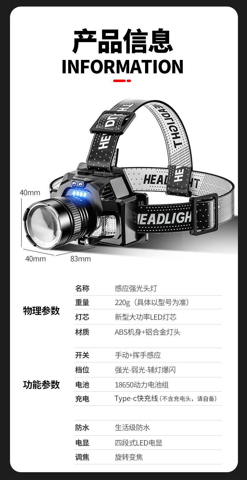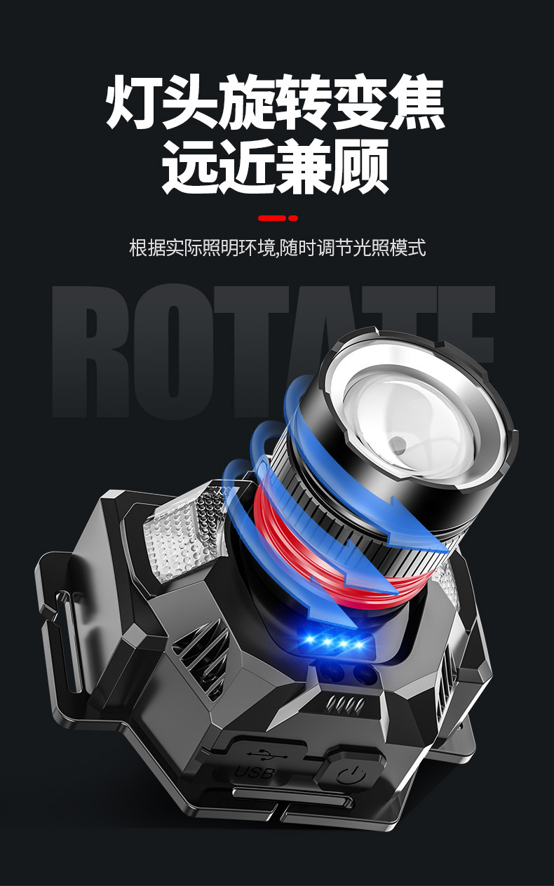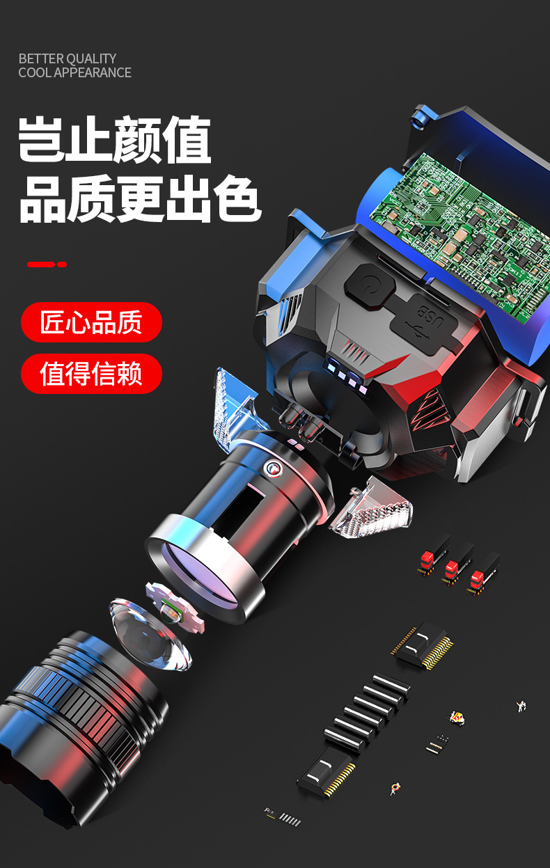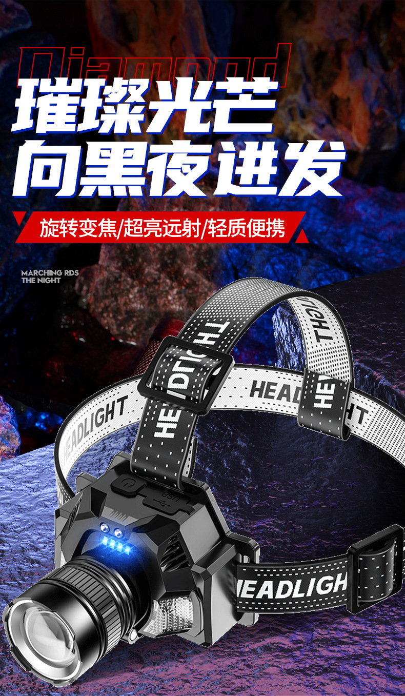 Сильная легкая фара, светодиодный перезаряжаемый зум, дальний головной фонарик, супер яркий фонарь для ночной рыбалки, Шахтерская лампа для трансграничной рыбалки