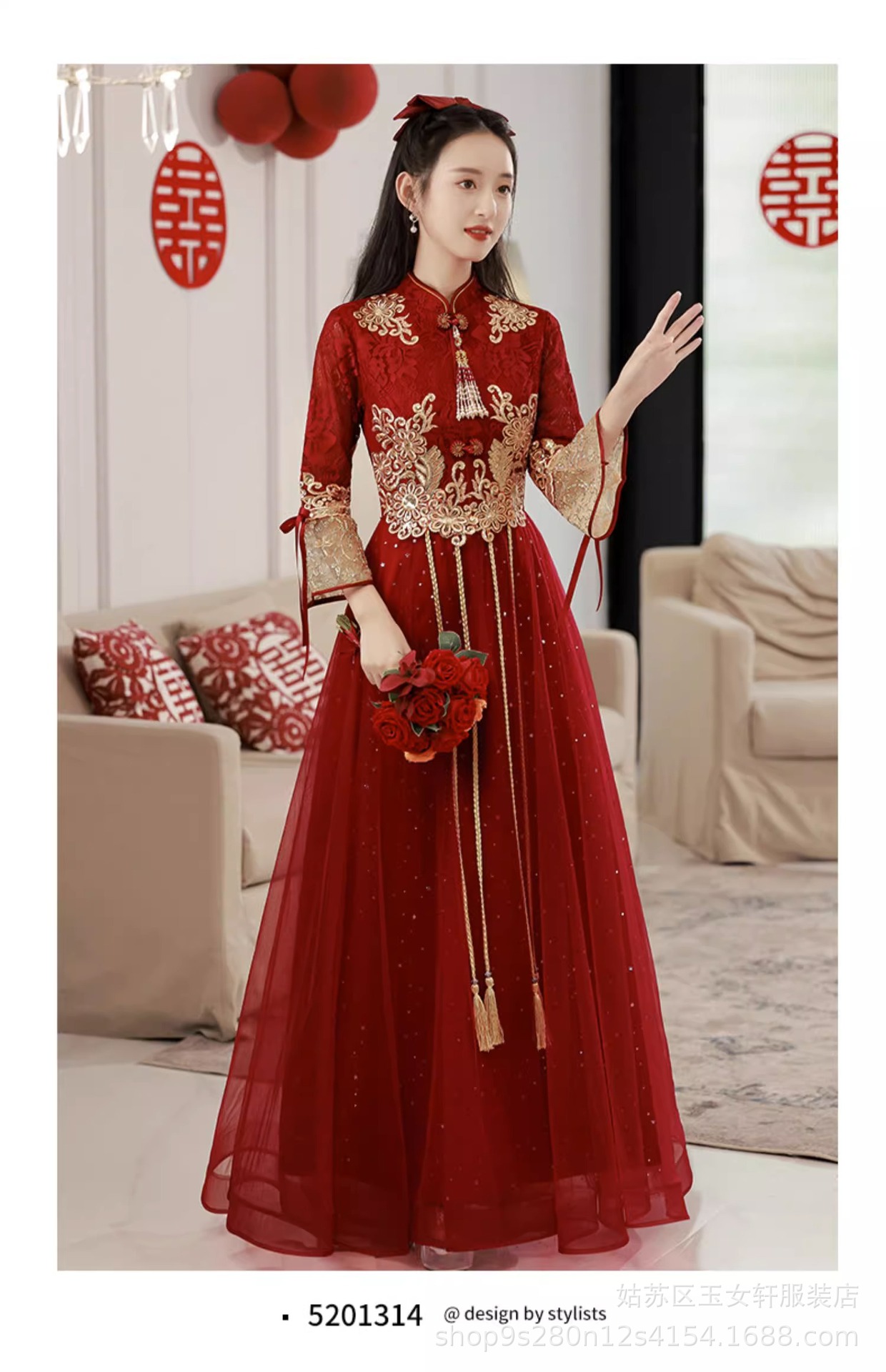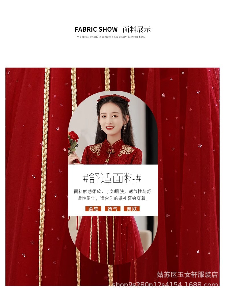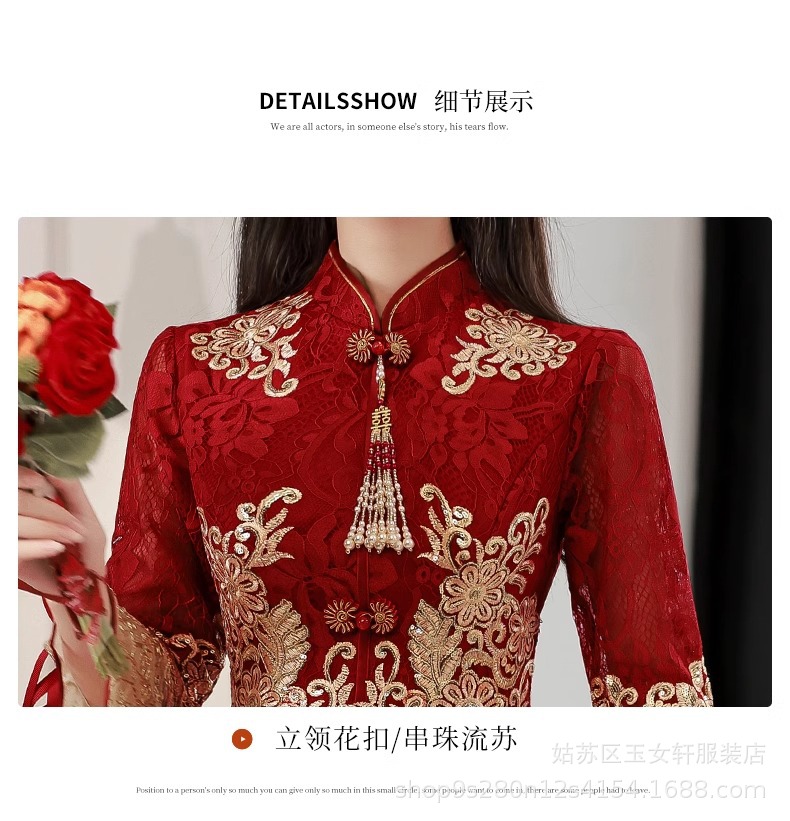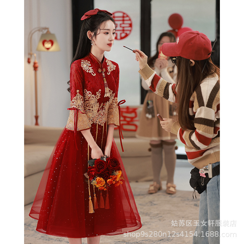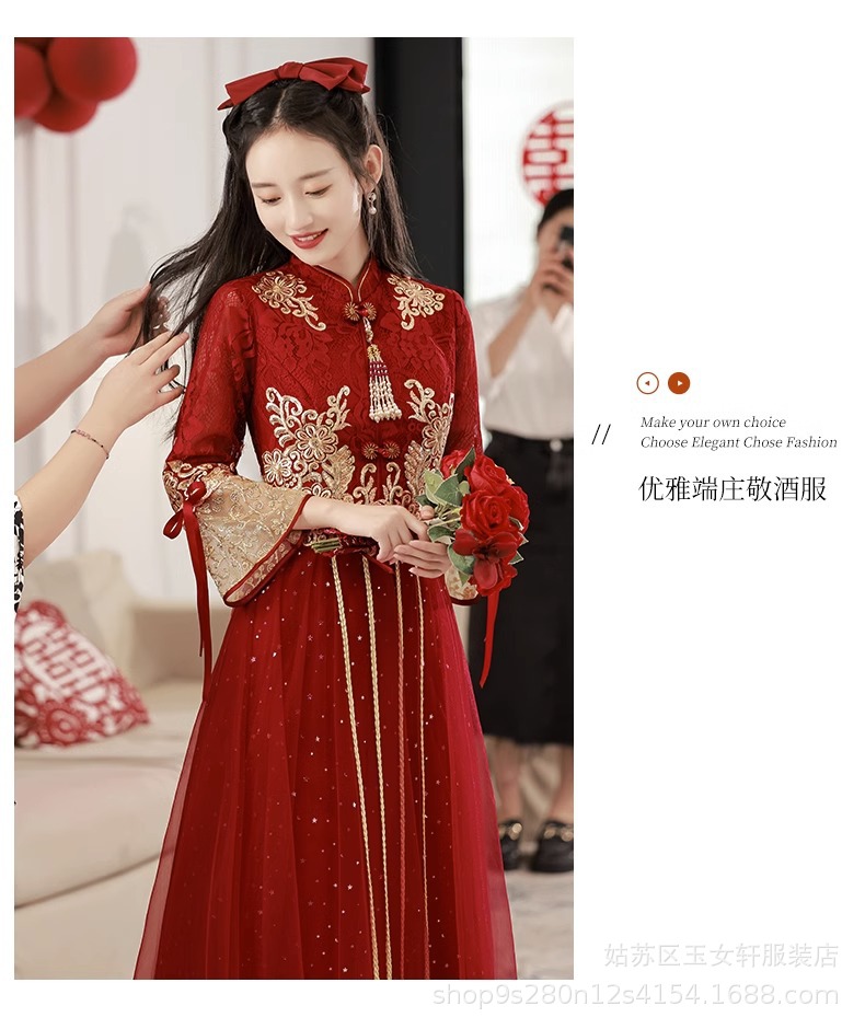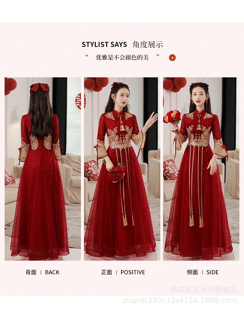 Красное свадебное платье для невесты, новинка 2024 года, осенне-зимнее элитное вечернее платье, китайский костюм Сюхэ, зимнее с длинными рукавами.