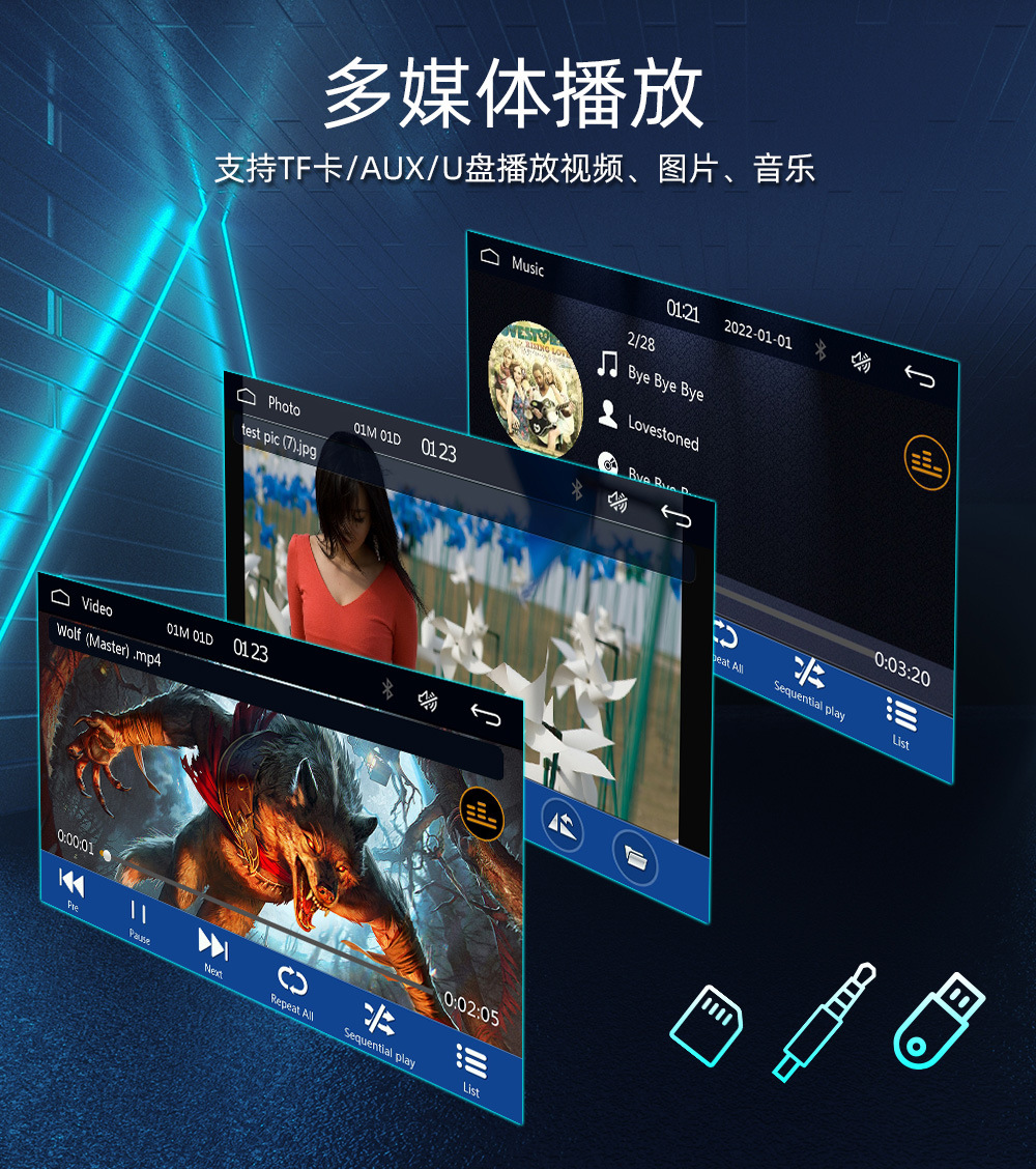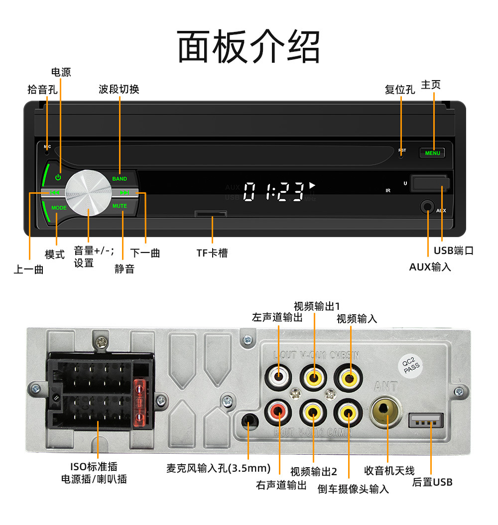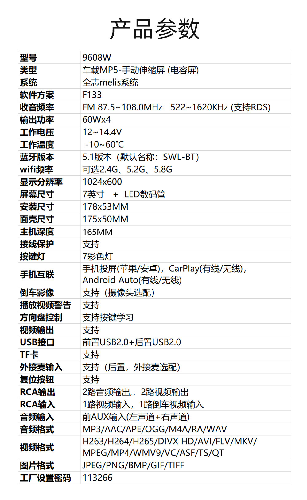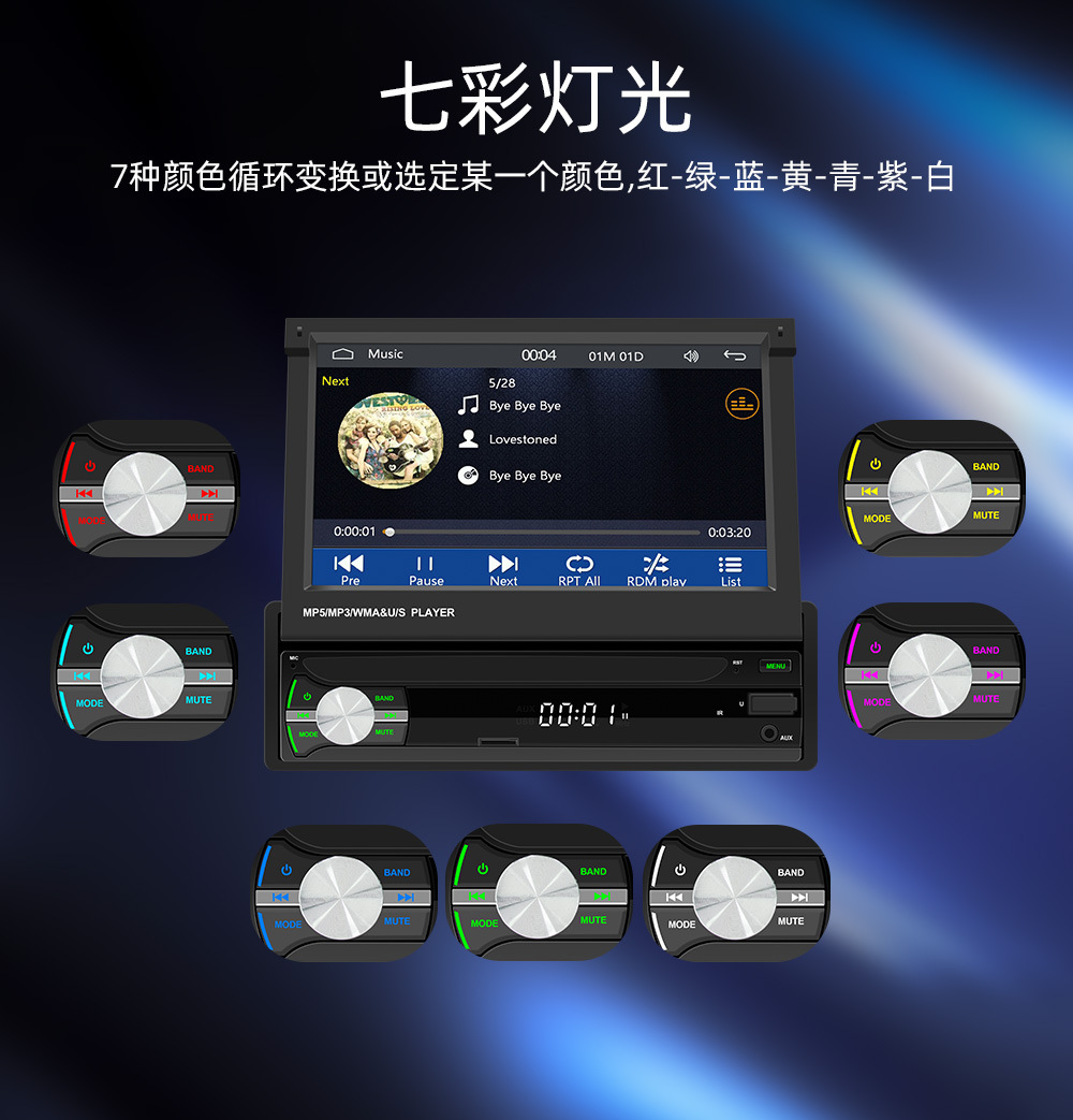类型:车载MP5-手动伸缩屏 (可选配电动伸缩)